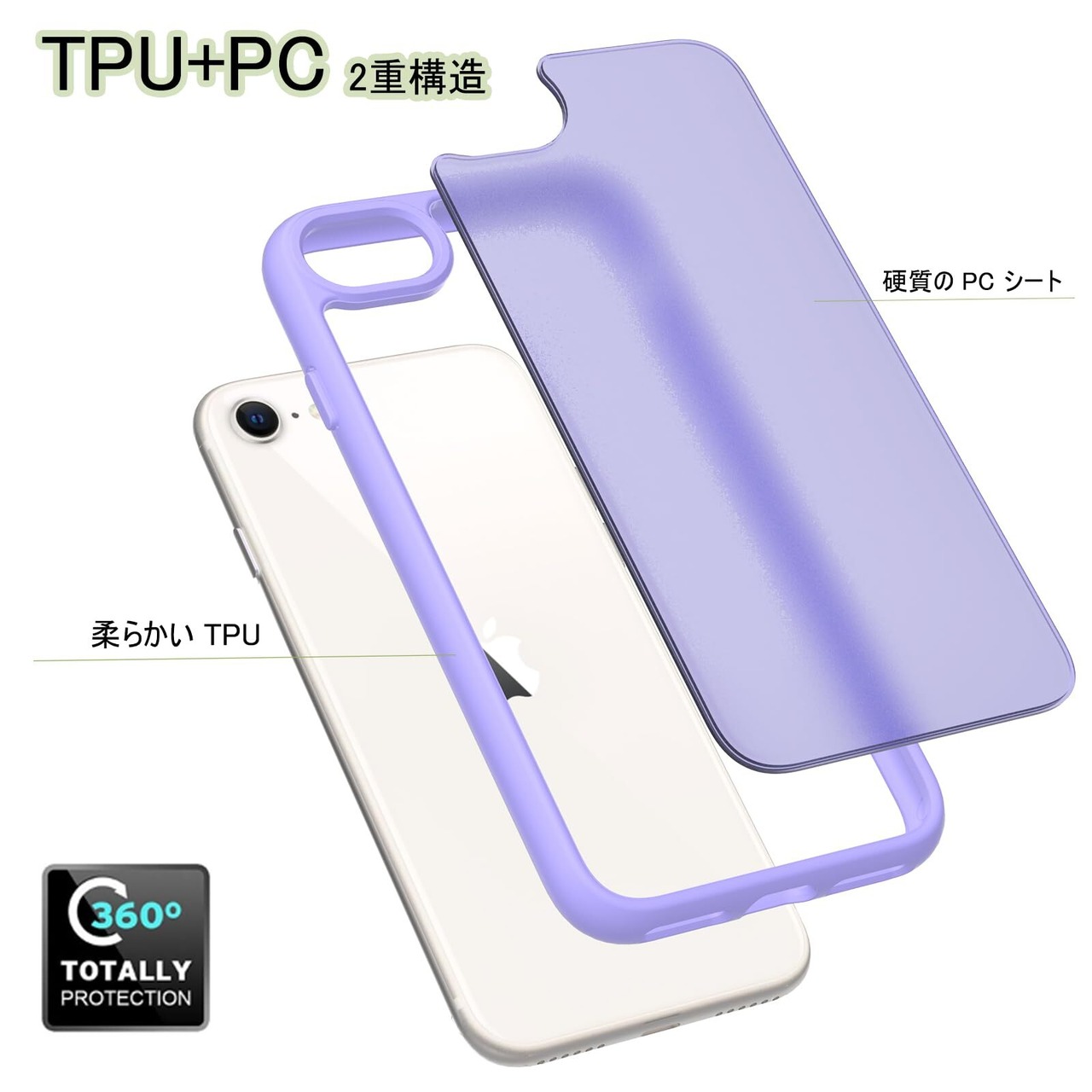 iPhone SE ケース 第3世代 第2世代 マット 半透明 スマホケース 米軍MIL規格 耐衝撃 ワイヤレス充電 黄ばみなし 指紋防止 アイフォン SE3 SE2 7 8 用カバー 4.7インチPinLiSheng(あさむらさき, iPhone SE2 iPhone SE3 iPhone8 iPhone7)