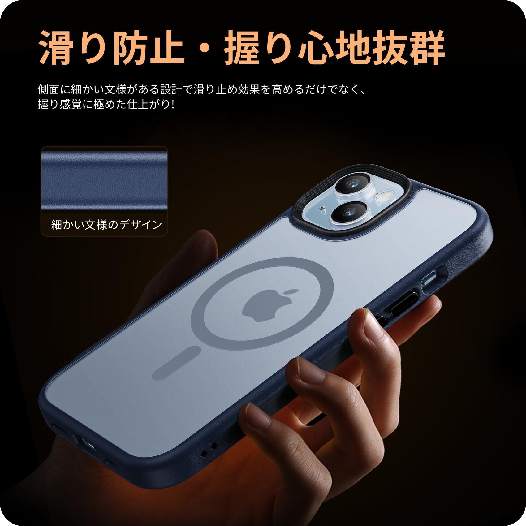 【在庫セール】NIMASO ケース MagSafe 対応 iPhone15用 ケース マグネット搭載 マグセーフ対応 カバー 滑り止め マット仕上げ 全面保護 耐衝撃 米軍MIL規格取得 ワイヤレス充電 ストラップホール付き アイフォン15対応(6.1インチ) スマホケース ブルー (黒羽シリーズ) NSC23K866 | asaRulu0511