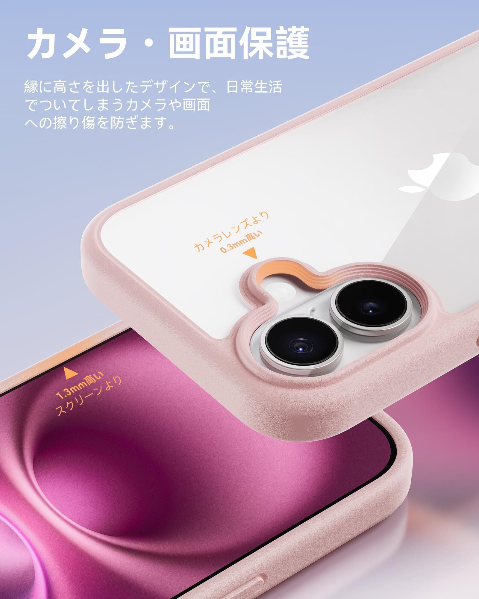 NIMASO iPhone16用ケース クリア 黄変防止 耐衝撃 米軍MIL規格 SGS認証 PC背面 いPhone16対応 ケース 傷つけ防止 超薄型 軽量 ワイヤレス充電対応 ストラップホール付き アイフォン16対応(6.1インチ) スマホケース(氷星シリーズ)ピンク NSC24G1475