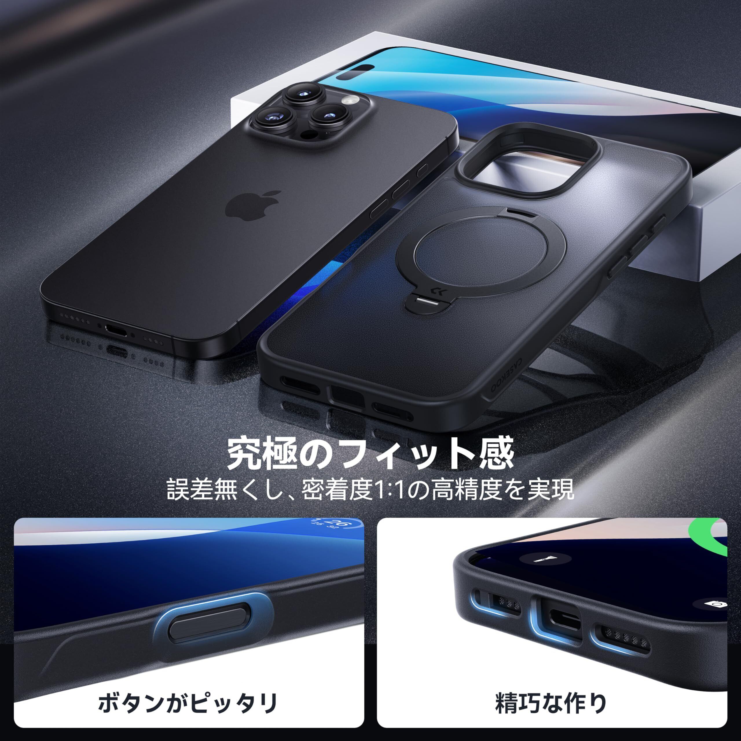 【在庫処分】【2025最高傑作&定点360度回転】CASEKOO iPhone 16 Pro 用 ケース 米軍MIL規格 耐衝撃 MagSafe対応 高耐久性【横縦両立・角度自由調整】最大25W急速充電対応 指紋防止/マット仕上げ/黄変防止/半透明 ラップホール付き ワイヤレス充電対応 いphone16pro 用ケース 6.3インチ「MagicStand Pro」(ブラック) | asaRulu0511