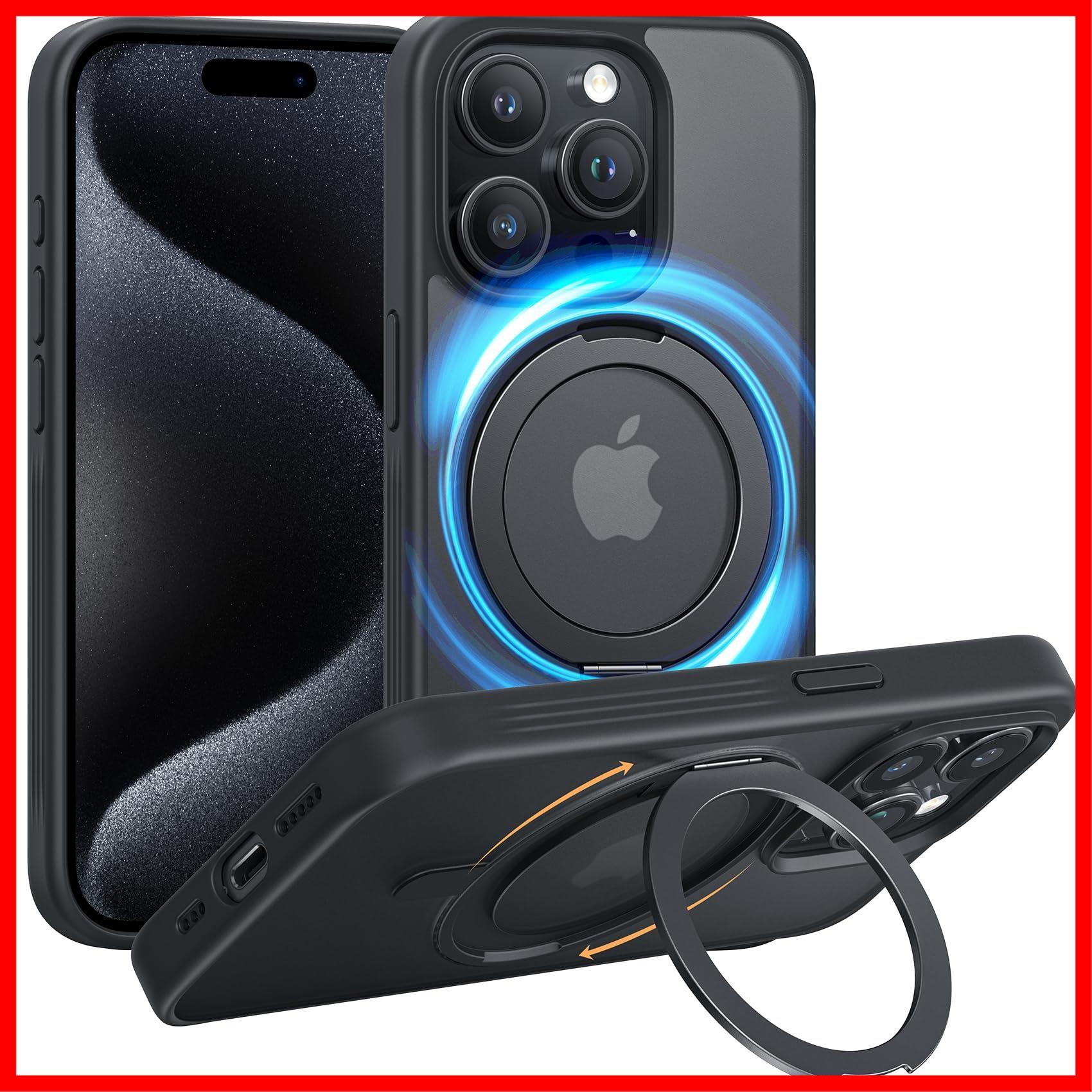 【人気商品】NIMASO iPhone 15 Pro 用 ケース 縦横両対応 360°回転スタンドケース いphone15Pro用 MagSafe対応 携帯スマホケース リングマグネット搭載 カバー ワイヤレス充電対応 マット感 防指紋 米軍MIL規格 耐衝撃性 アイフォン15プロ 用ケース アジャスタブルスタンド ブラック NSC24F1334 | asaRulu0511