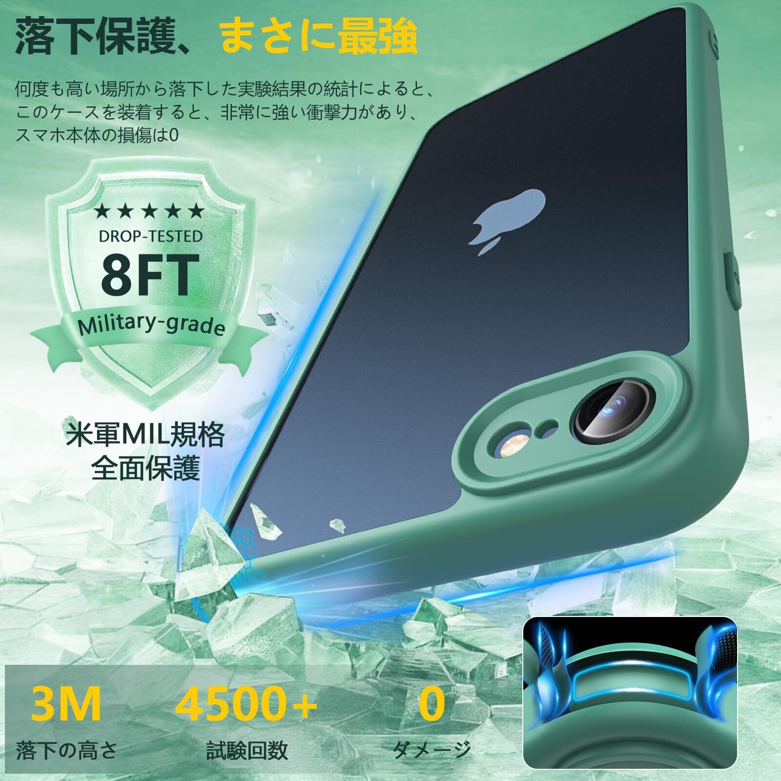 【在庫処分】OWKEY iPhone SE ケース iPhone SE3 SE2 iPhone8 iPhone7 ケース【ガラスフィルム付き】半透明 薄型 軽量 アイフォンse スマホケース 米軍MIL規格 全面保護 耐衝撃 レンズ保護 iPhone SE 第3世代 第2世代 ケース ストラップホール 黄ばみなし 耐久性 iPhone SE2/SE3/8/7 用ケース 4.7イン グリーン | asaRulu0511