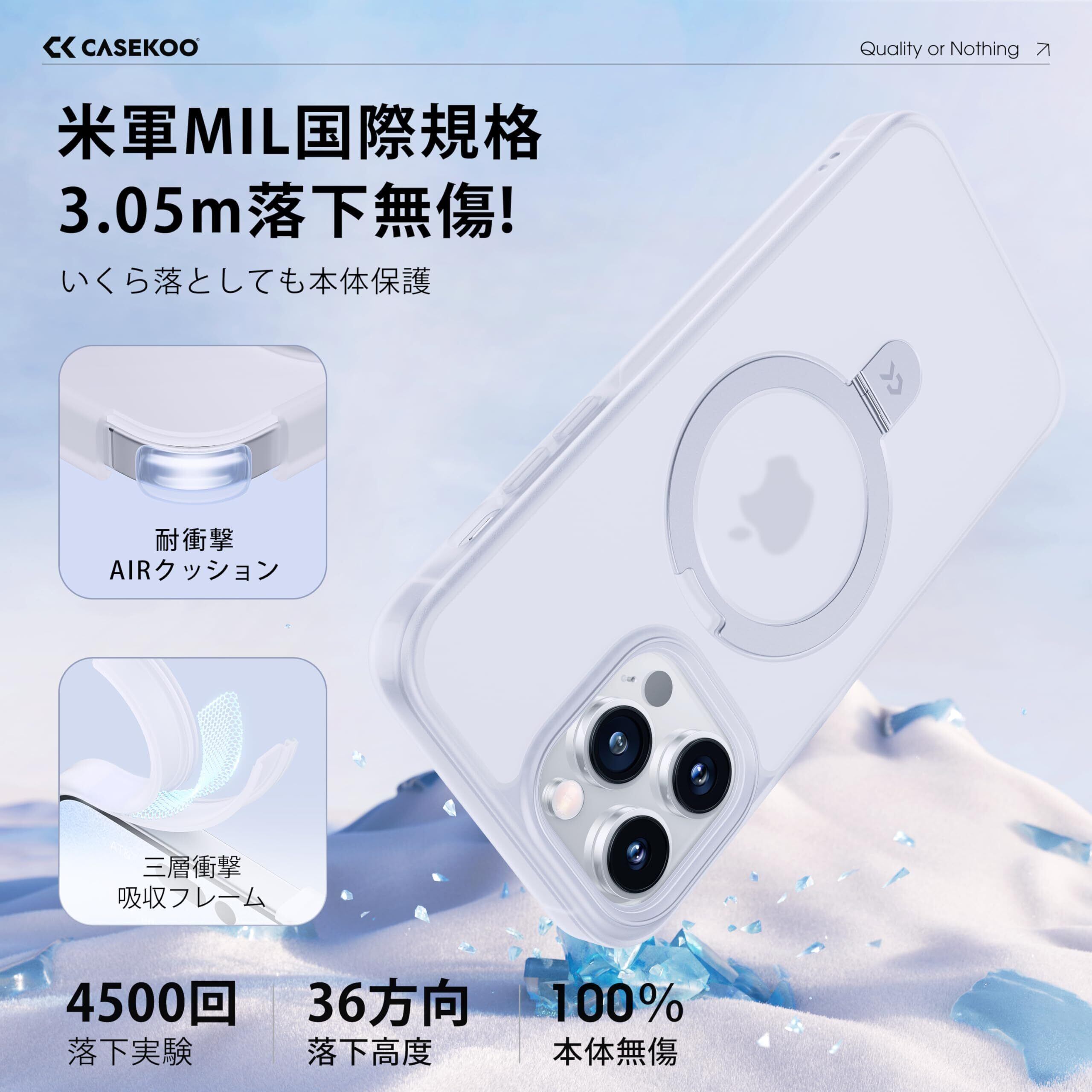 【在庫処分】【2025必見!4in1多機能満載】CASEKOO iPhone13ProMax 用 ケース 隠しスタンド 横縦両立 米軍MIL規格 耐衝撃 MagSafe対応 スマホケース 薄形半透明 マット仕上げ 指紋防止 ストラップホール付き ワイヤレス充電対応 アイフォン 13pro max 用 ケース 6.7インチ カバー(マットクリア) | asaRulu0511