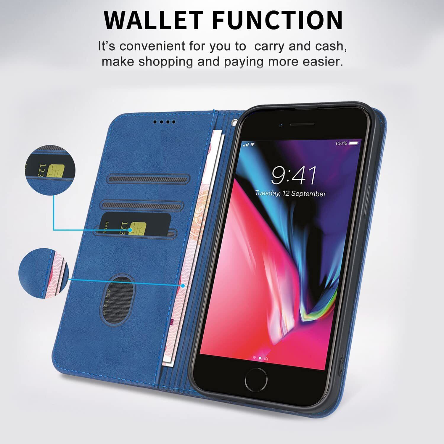 【新春セール】iPhone SE ケース 第2世代 第3世代 iPhone8 ケース 手帳型 iPhone7 スマホケース 携帯カバー 通用 Gedurya iPhone SE 第3世代 ケース 手帳型 iPhone 8 カバー マグネット式 スタンド機能 iPhone SE3 2022 ケース 財布型 カード収納 iPhone SE2 2020 手帳型ケース 全面保護 耐衝撃 4.7インチ対応 - ブルー
