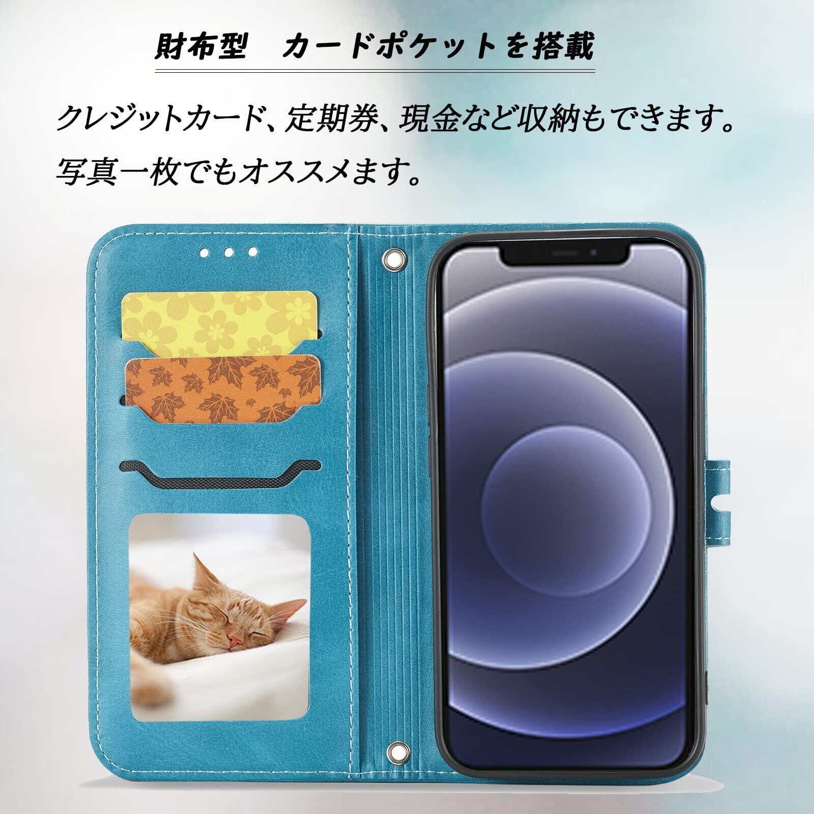 iPhone15 ケース 手帳型 iPhone 15 手帳 カバー iPhone15 手帳型ケース あいふぉん15 ケース手帳型 アイフォン15 ケース 携帯ケース iPhone15 case スマホケース スマホカバー 携帯カバー ストラップ付き カード収納 ベルトマグネット スタンド機能 かわいい 笑顔猫 耐衝撃 全面保護 (iPhone 15 6.1 inch対応) ターコイズ