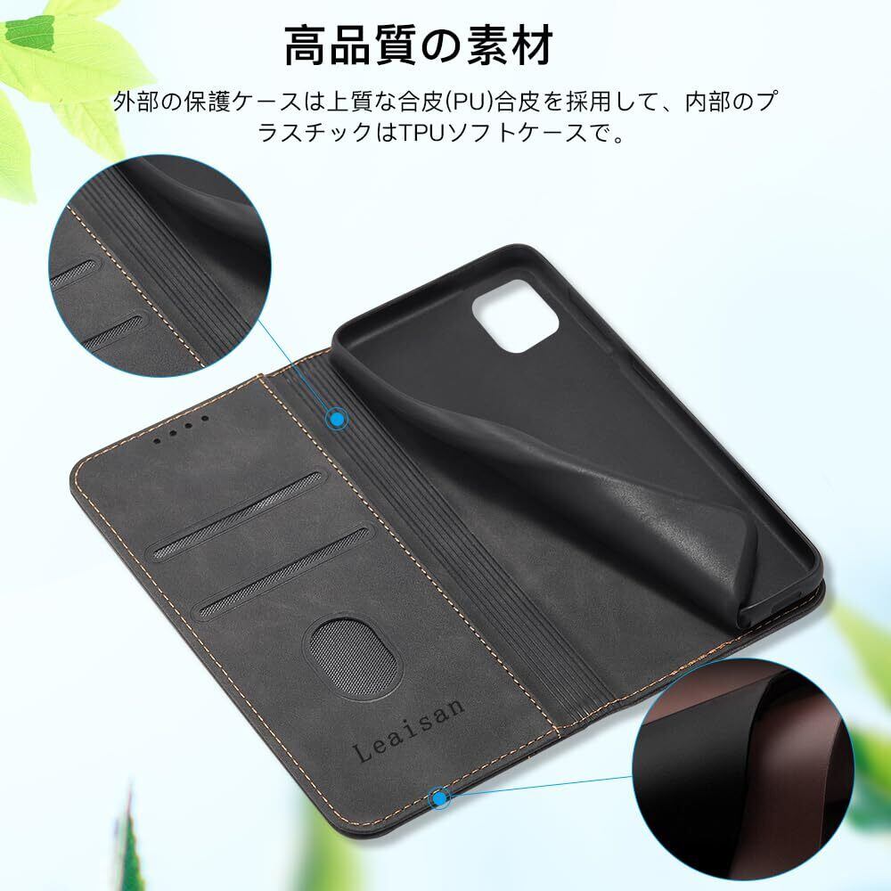 Leaisan iPhone 11ケース 手帳型 レザー アイフォン 11用 手帳型 スマホケース 内蔵マグネット 携帯カバー 【カード収納ポケット】 【スタンド機能】 全面保護 耐衝撃 薄型 手触りが良い 6.1インチ対応 - ブラック
