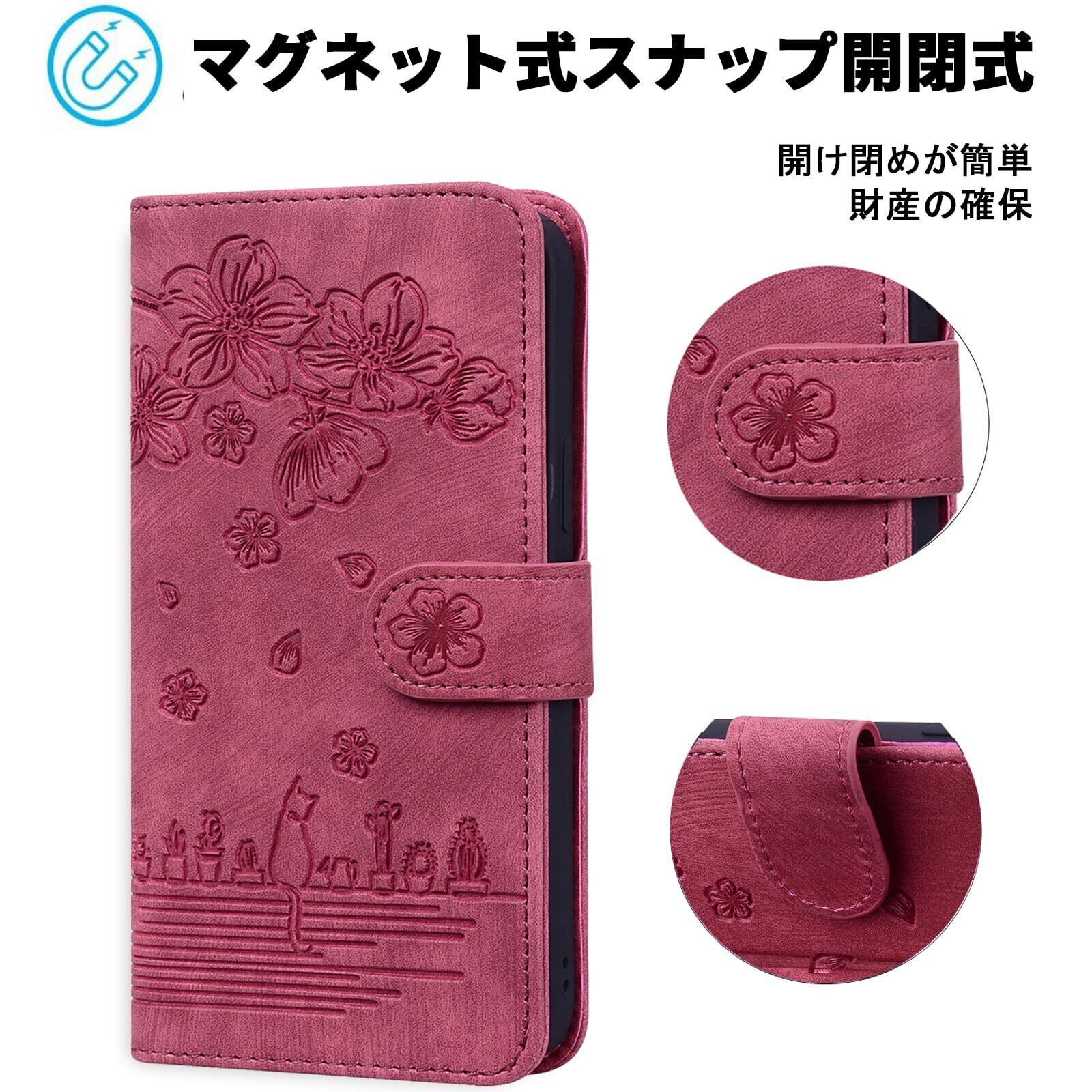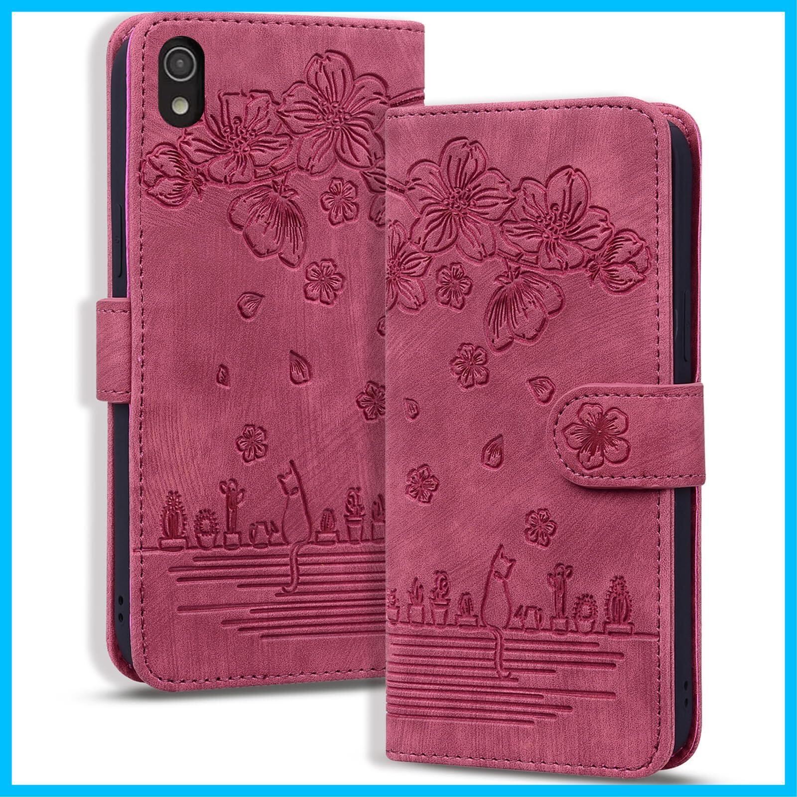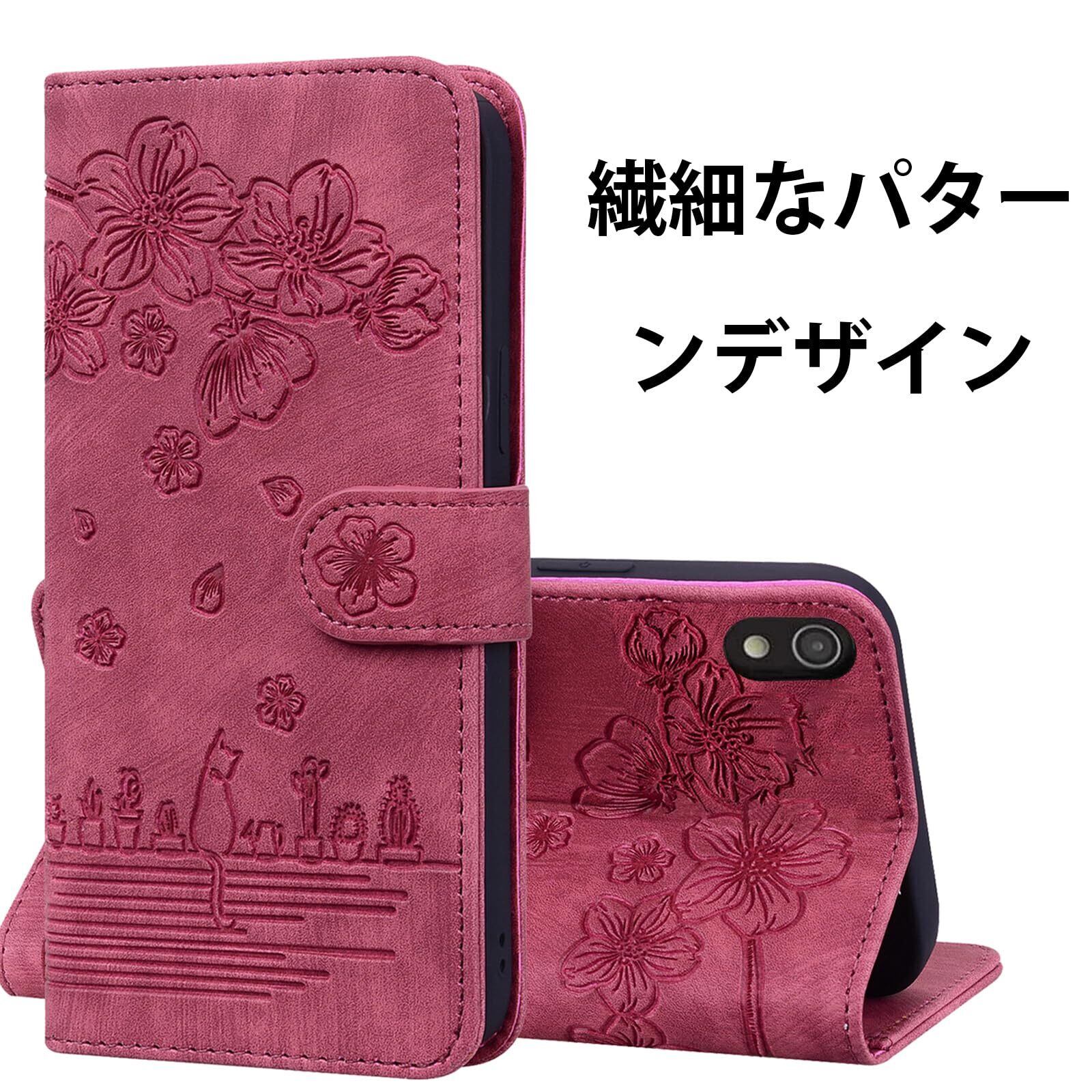 AQUOS sense SH-01K ケース 手帳型 SHV40 ケース AQUOS sense Lite SH-M05 ケース 手帳型 Aquos SH-01K スマホケース Android One S3 ケース 衝撃保護 プレミアムPUレザー 持ち運びに便利なリストストラップ スマホケース 財布型 桜柄マグネットバックル カード収納袋 角度調整可能なスタンド[レッド]