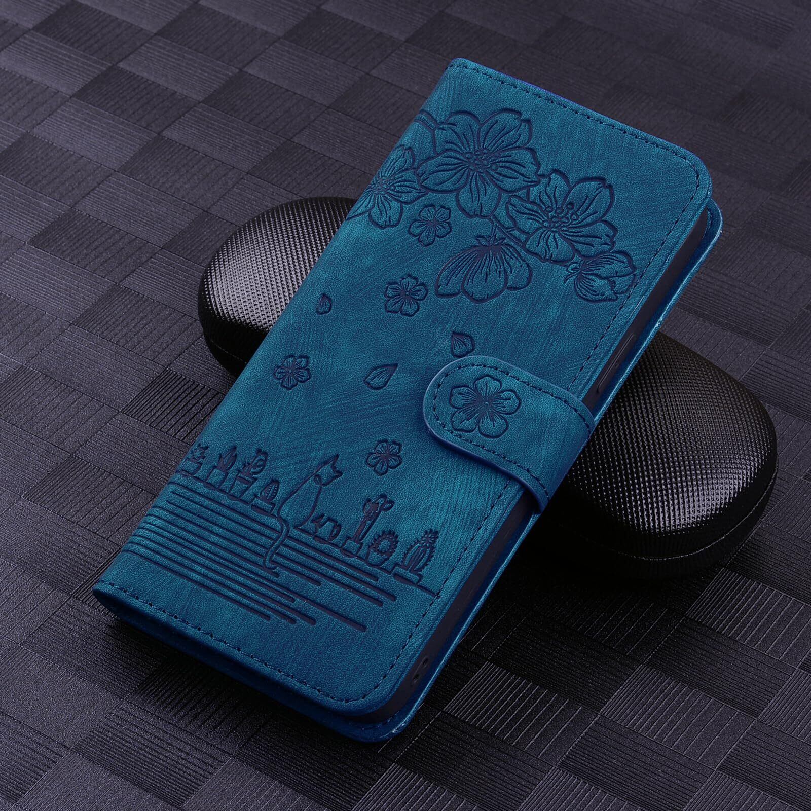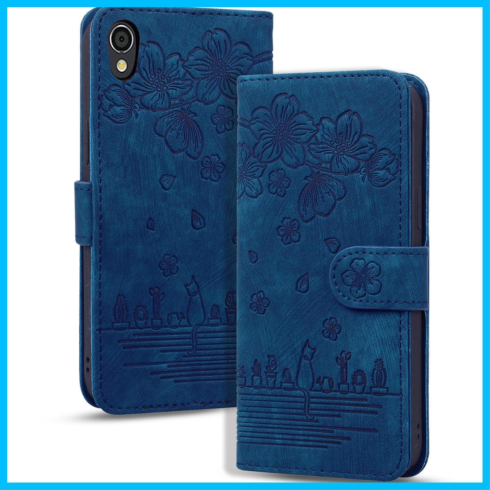 AQUOS sense2 ケース手帳型 shv43 スマホケース shv43 ケース 手帳型 AQUOS sense2 SH-01L ケース 手帳型 Android One S5 ケース SH-M08 手帳型 ケース 桜の木の下の猫 プレミアム PU レザー 衝撃保護 磁気吸収バックル スマホカバー カード収納 かわいい猫 アクオスsense 2 スマホケース[ダークブルー]