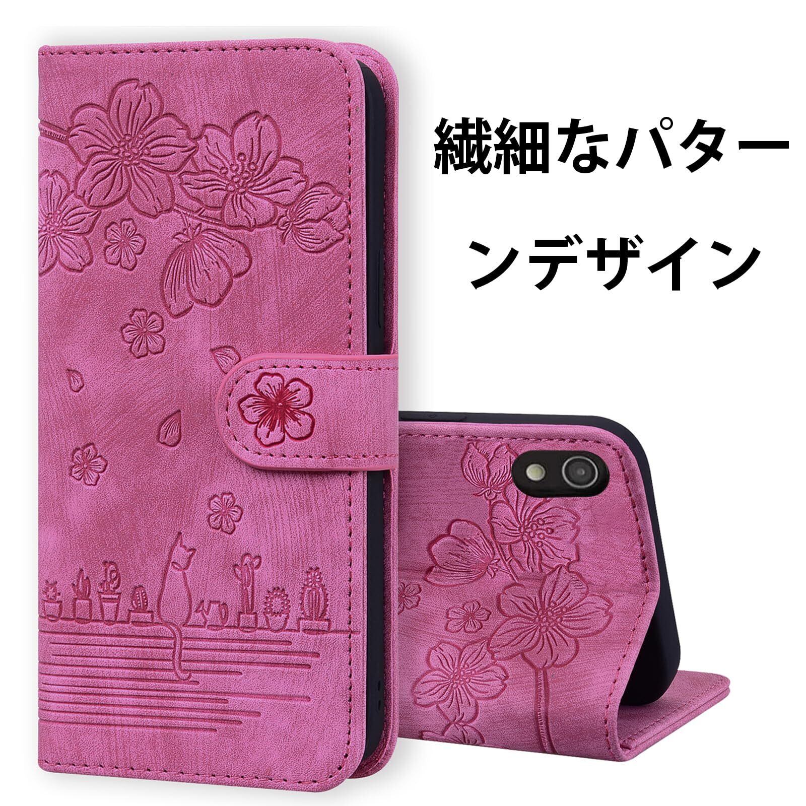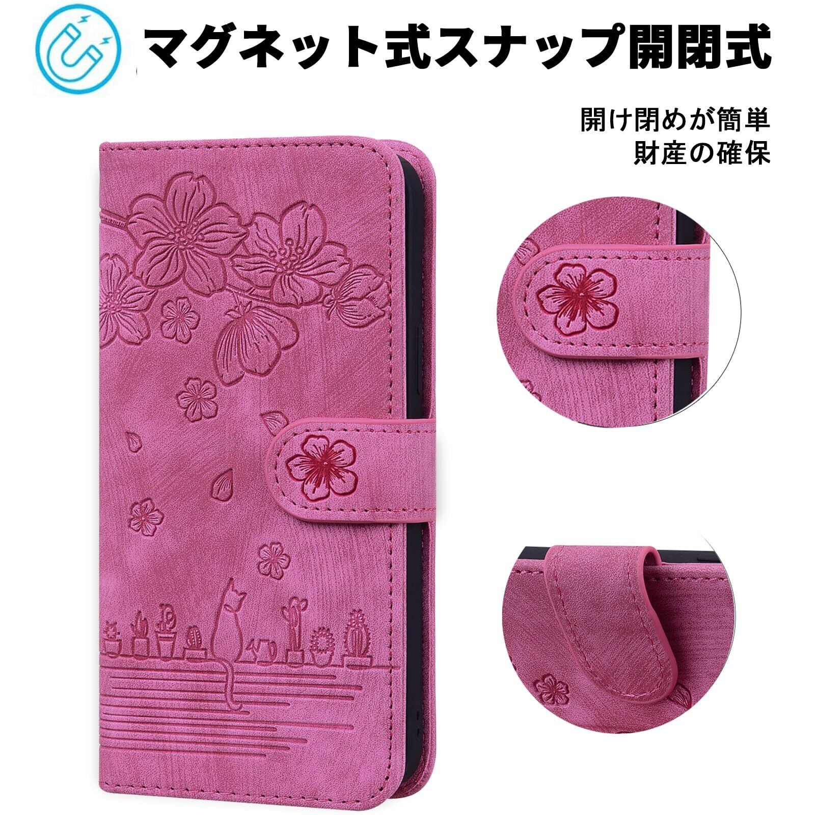 AQUOS sense SH-01K ケース 手帳型 SHV40 ケース AQUOS sense Lite SH-M05 ケース 手帳型 Aquos SH-01K スマホケース Android One S3 ケース 衝撃保護 プレミアムPUレザー 持ち運びに便利なリストストラップ スマホケース 財布型 桜柄マグネットバックル カード収納袋 角度調整可能なスタンド[ローズピンク]