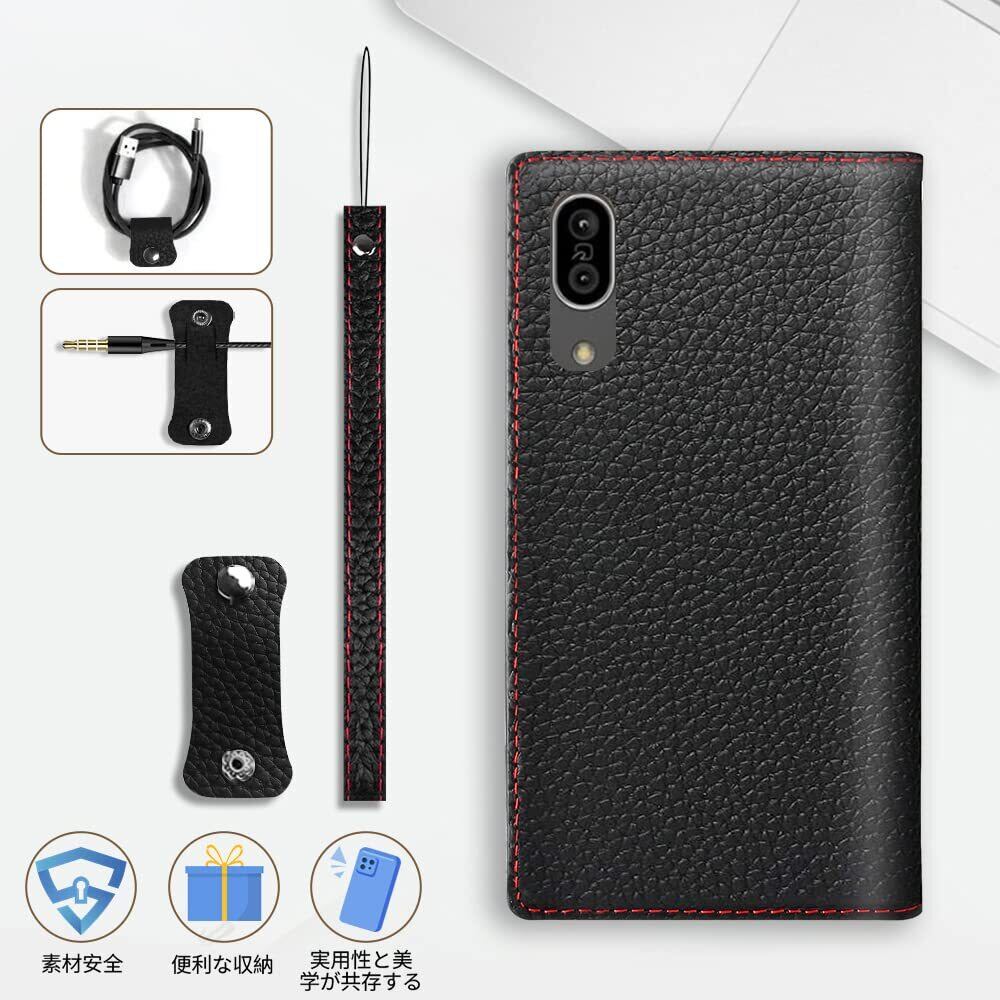 【2022最新】TENSIK AQUOS sense3 ケース 手帳型 SH-02M/SHV45/SHV48 ケース 高級牛本革 アクオスセンス3 スマホケース Android One S7/sense3 lite/sense3 basic 携帯カバー 財布型レザー 手帳型カバー本革 マグネット式 スタンド機能 ストラップ付き カードポケッ トギフトボックス付き ブラック×レッド | asaRulu0511