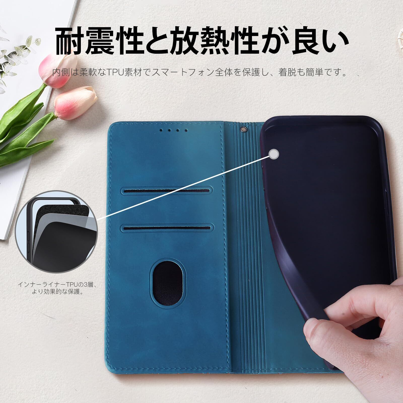 【高品質皮革ケース】:肌感PUレザー +柔軟なTPUカバーと組み合わせ、軽量で耐衝撃性に優れ、しっかりの二重保護でスマホ本体を守り抜きます。内側はアクオスセンス2 /Android One S5にフィットし、画面より少しだけ高く設計されたコーナーが全周をカバーしています。角までしっかり保護できるAndroid One S5 ケース 携帯カバーです、スマホ本体への損傷の心配はありません。