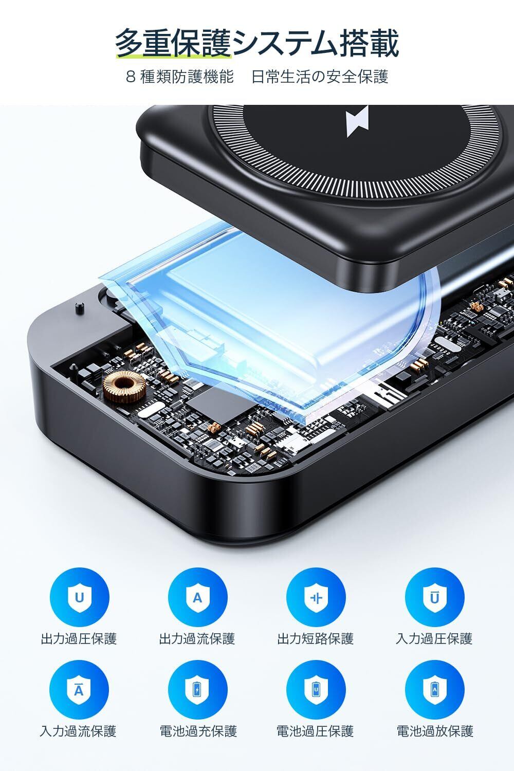 【マッグネット式ワイヤレス充電・15W急速充電】マッグネット式ワイヤレスモバイルバッテリーは最大出力15Wの充電機能を搭載、強力な磁石を内蔵し、アイフォンをしっかりホールドし、移動中でもズレる心配はありません。※ワイヤレス充電機能があるスマホに対応しています。