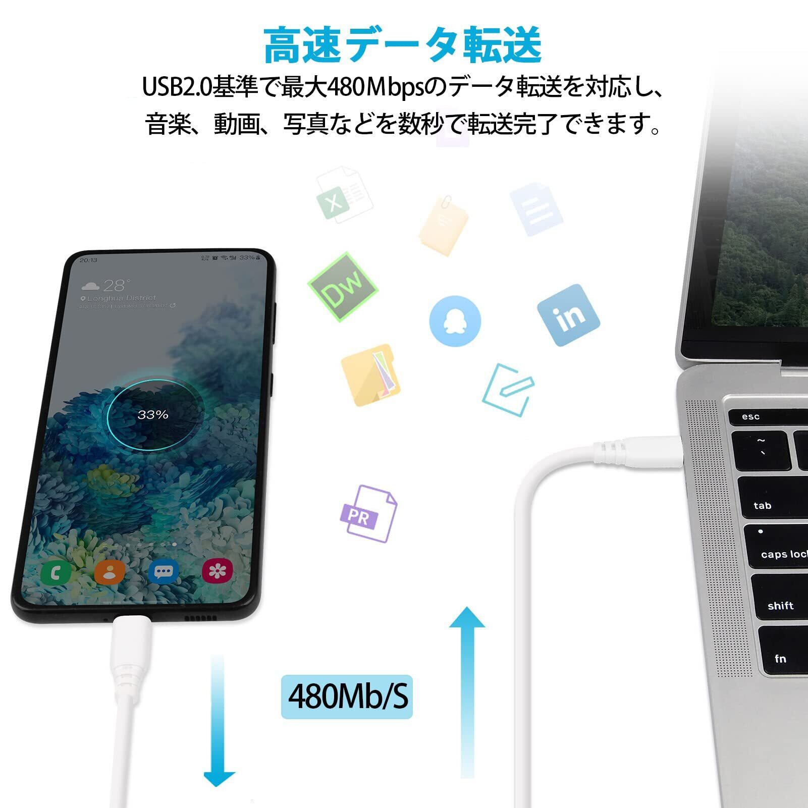 【優れた耐久性】高耐久TPEを採用し、他のケーブルよりこのusbコードは5倍以上の持続力を持ち、ケーブルの脱落、割れ、錆びを有効に防止できます。type c 充電 ケーブルの端子の両面も使われて、向きを気にせず機種に挿し込んでも良いです。
