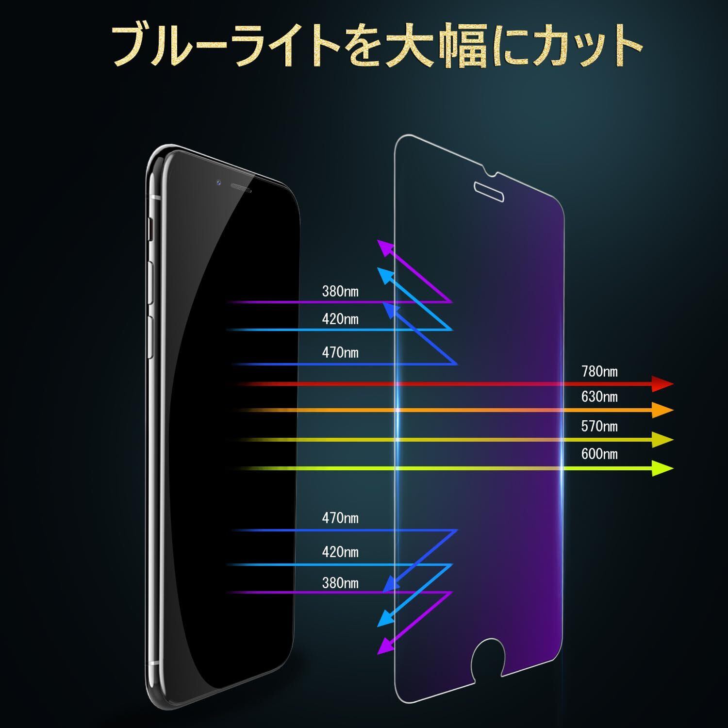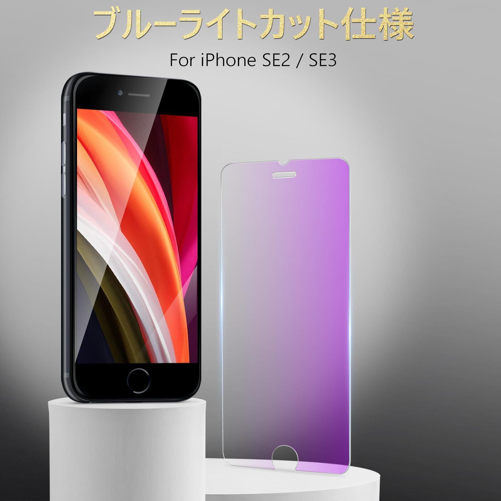 iPhoneSE第2世代 / iPhoneSE第3世代 ガラスフィルム ブルーライト iPhone SE2 / SE3 保護フィルム ブルーライトカット アイフォンSE フィルム 2枚セット いphone せ2 / せ3 用 強化ガラス 画面保護 シート 【硬度9H/指紋 防止/貼り付け簡単】 ガイド枠 付き