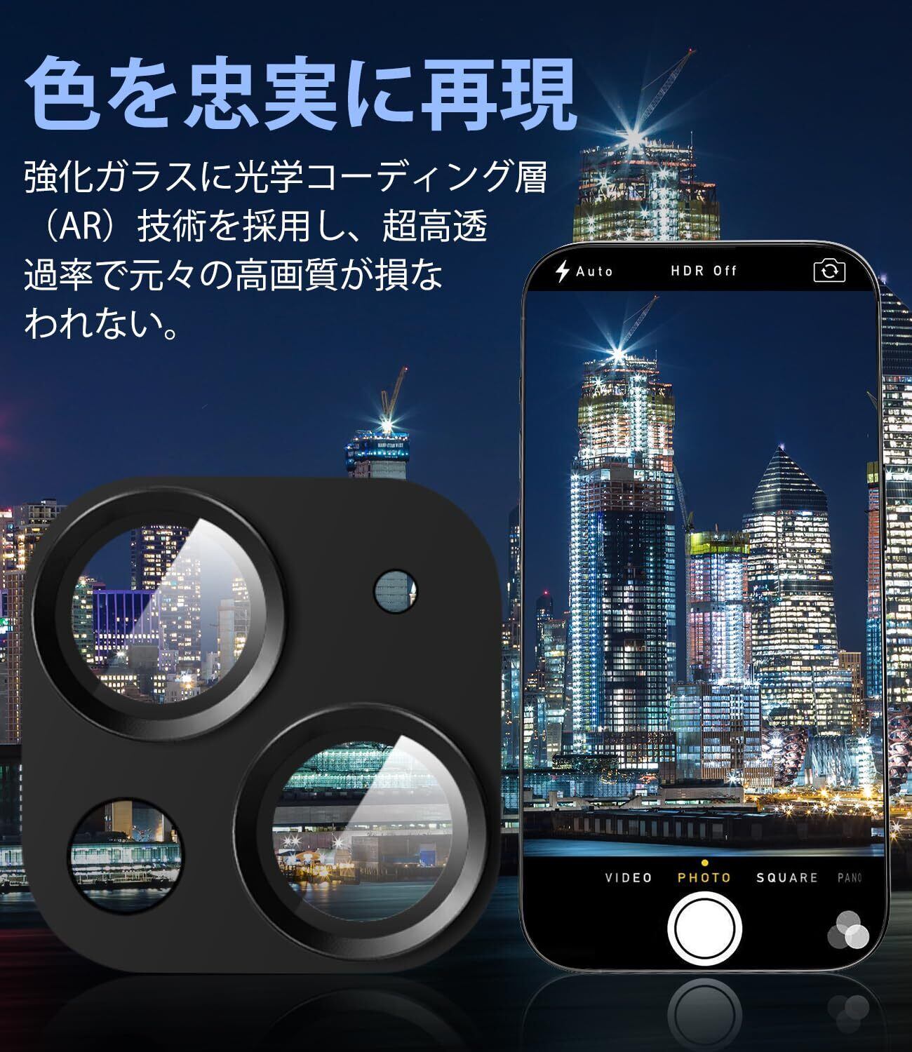 【AR超高透過率・露出オーバー防止】 アイフォン15・15プラス カメラ レンズ保護カバーは、光学コーディング層(AR)技術を採用しています。高透過のガラスで元々の高画質が損なわれなくてリアルな色彩を実現します。また、金属ベースと黒縁仕上げにより、露出オーバー、フレア、ゴーストなどを防止できます。昼夜を問わず、カメラの自動露出機能に干渉せず、カメラの高画質と優れた描写性能をフル発揮して、本格的なiPhone撮影体験を存分に楽しめます!