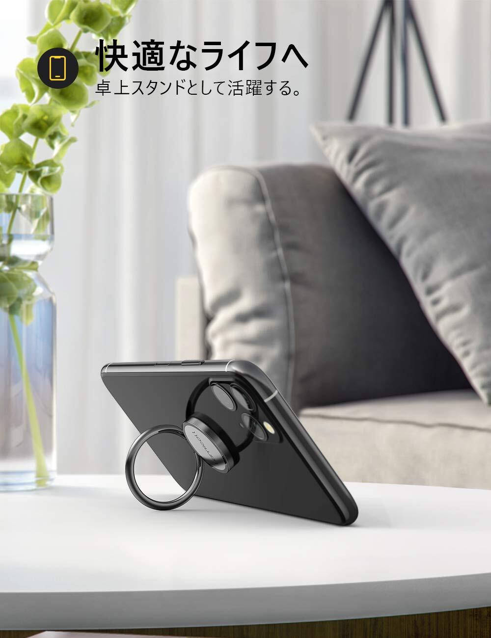 スマホリング 4㎜ 薄い 180度 360度回転式 : Lomicall 携帯電話 リングホルダー 片手持ち 携帯リング 指輪型 薄 フィンガーリング 薄型 アイホン 指リング スタンド機能 角度調整 丸型 取り外し 落下防止 車載磁石ホルダー対応 2024 iPhone 16 16Plus 16Pro 16Pro Max 15 14 13 12 mini XS XR se アンドロイドに対応 黒