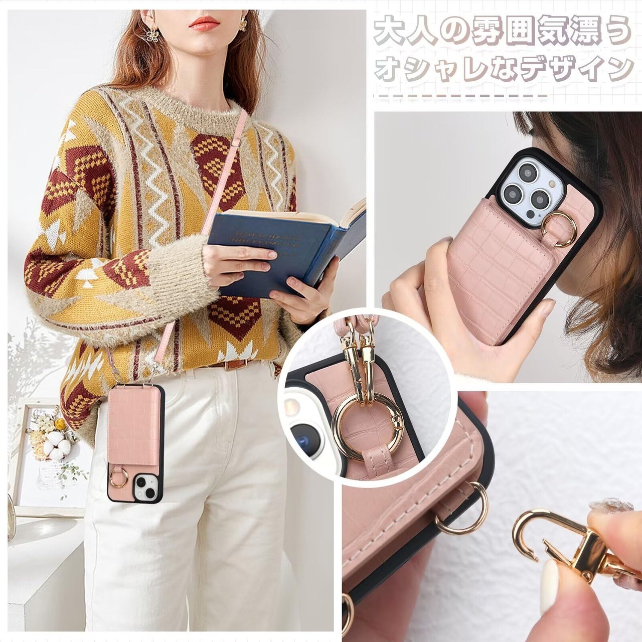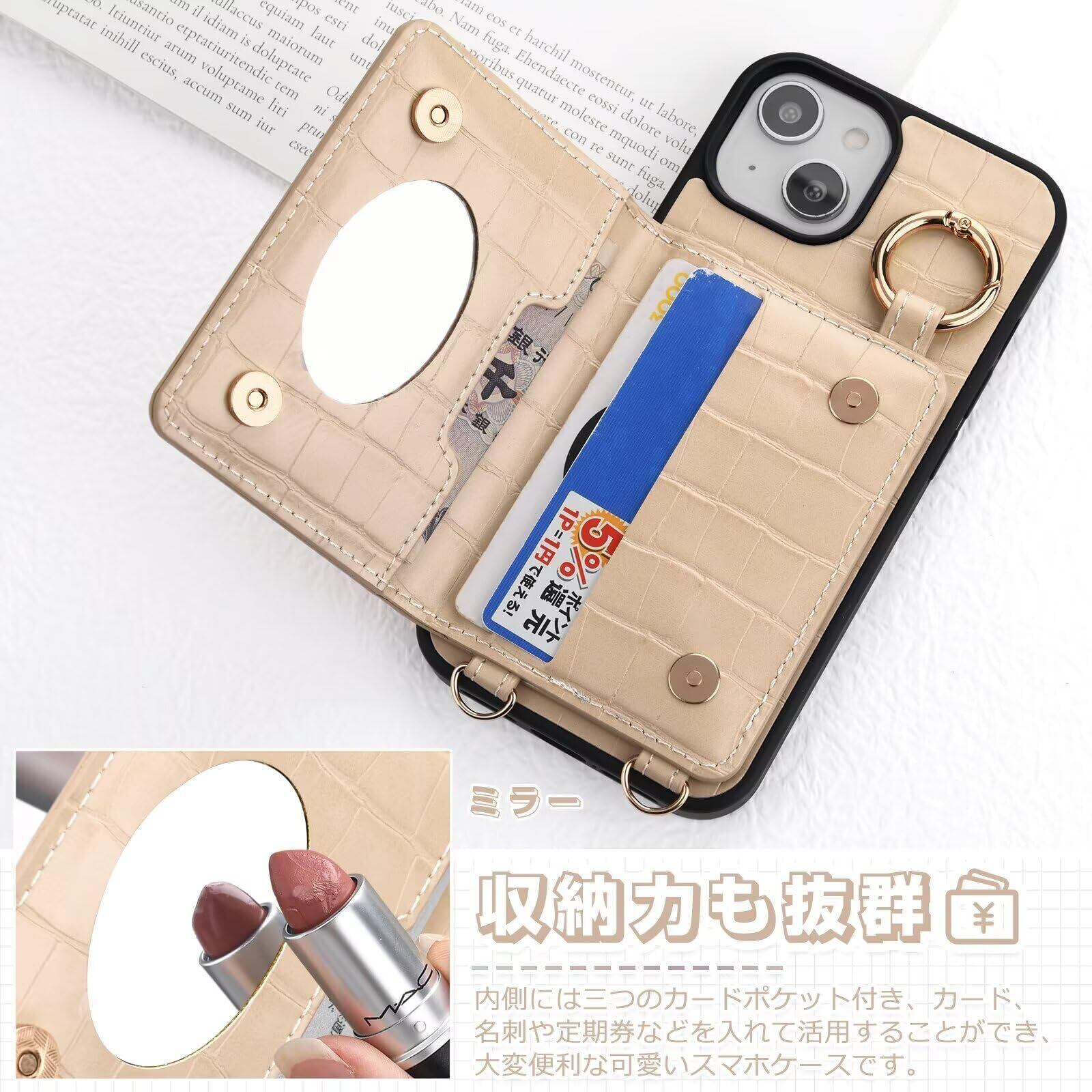 Sences iPhone SE[第2世代] スマホケース iPhone [第3世代] ケース 手帳型 ショルダー クロコ風型押し アイフォン 8 スマホケース 手帳型 カード収納 iPhone 7 携帯ケース 手帳型 肩掛け 斜めかけ ストラップ付き アイフォン 6 ケース カード入れ 背面収納 鏡付き(iPhone SE[第2世代]/[第3世代]/8/7/6/6s (4.7")アプリコット)