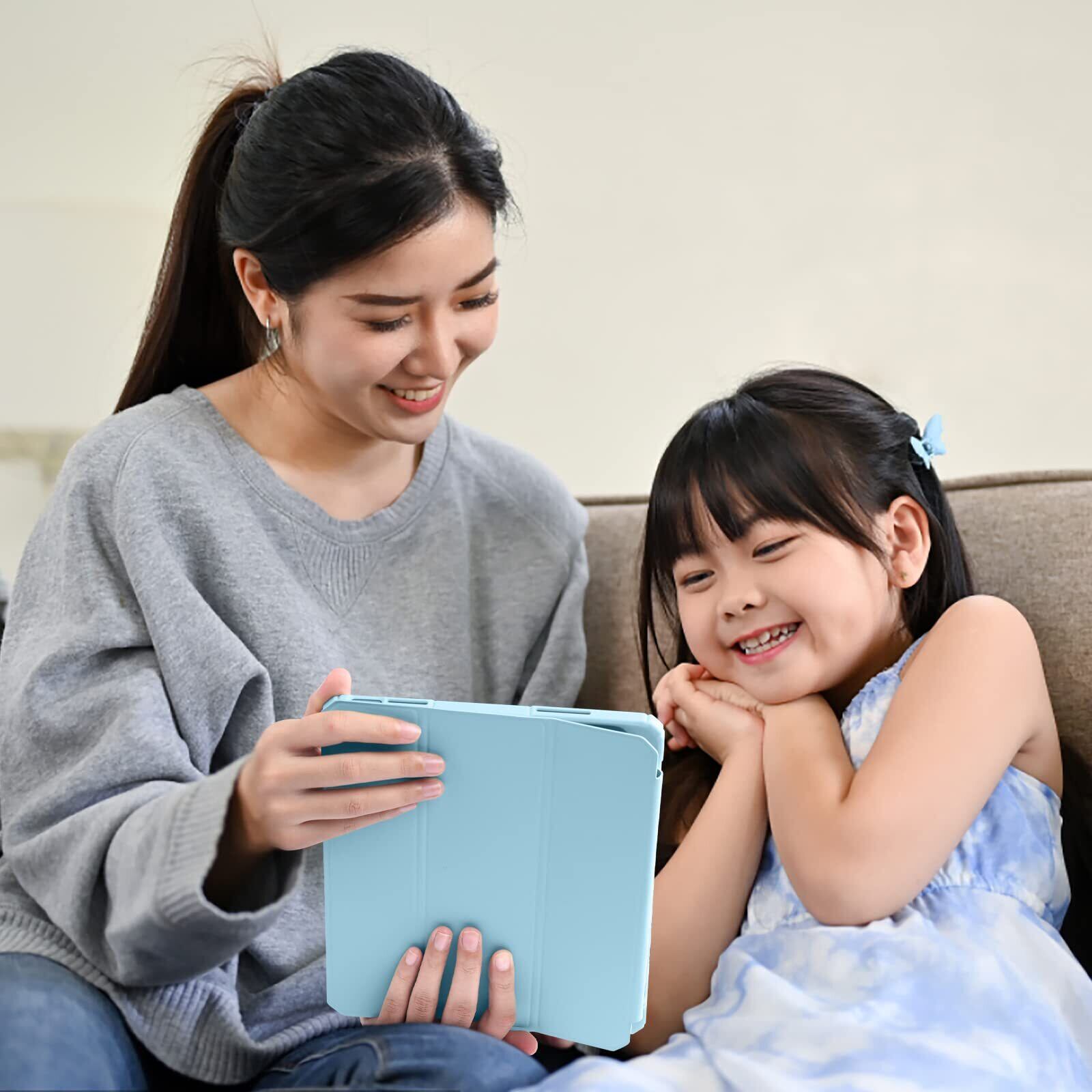 【三つ折り・スタンド機能】カバーは折りたたみ仕様でデザインされており、折りたたんでスタンドになり、二つの角度に調整可能です。これにより、動画視聴やタイピング、ゲームなどを快適にお楽しみいただけます。