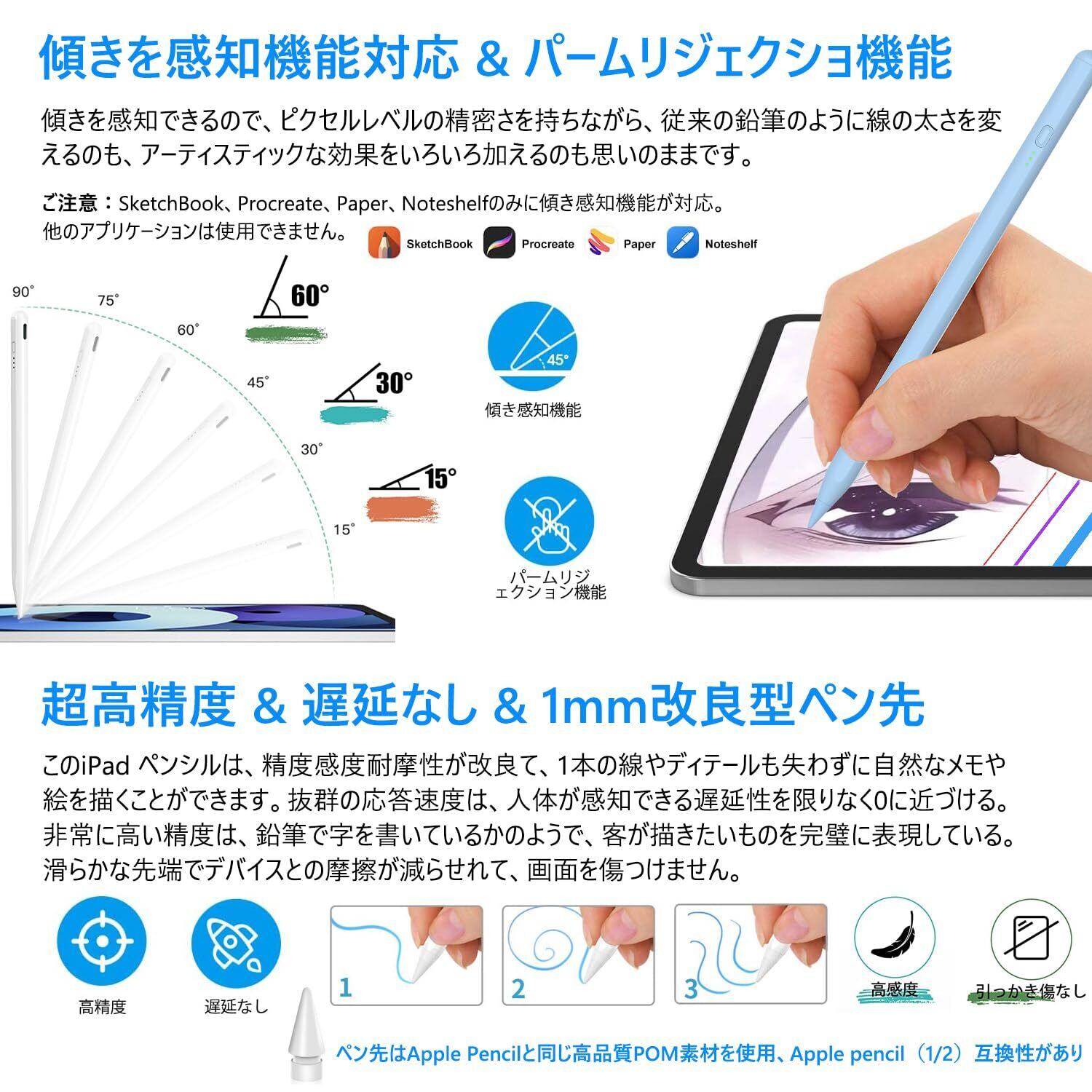 ipad ペンシル 第9世代対応 傾き感知 超高感度 タッチペン iPad ペン 極細アップルペンシル ペン先 誤作動防止 磁気吸着機能対応 軽量 充電式 ipad ペンシル 2018年以降iPad/iPad Pro/iPad air/iPad mini対応