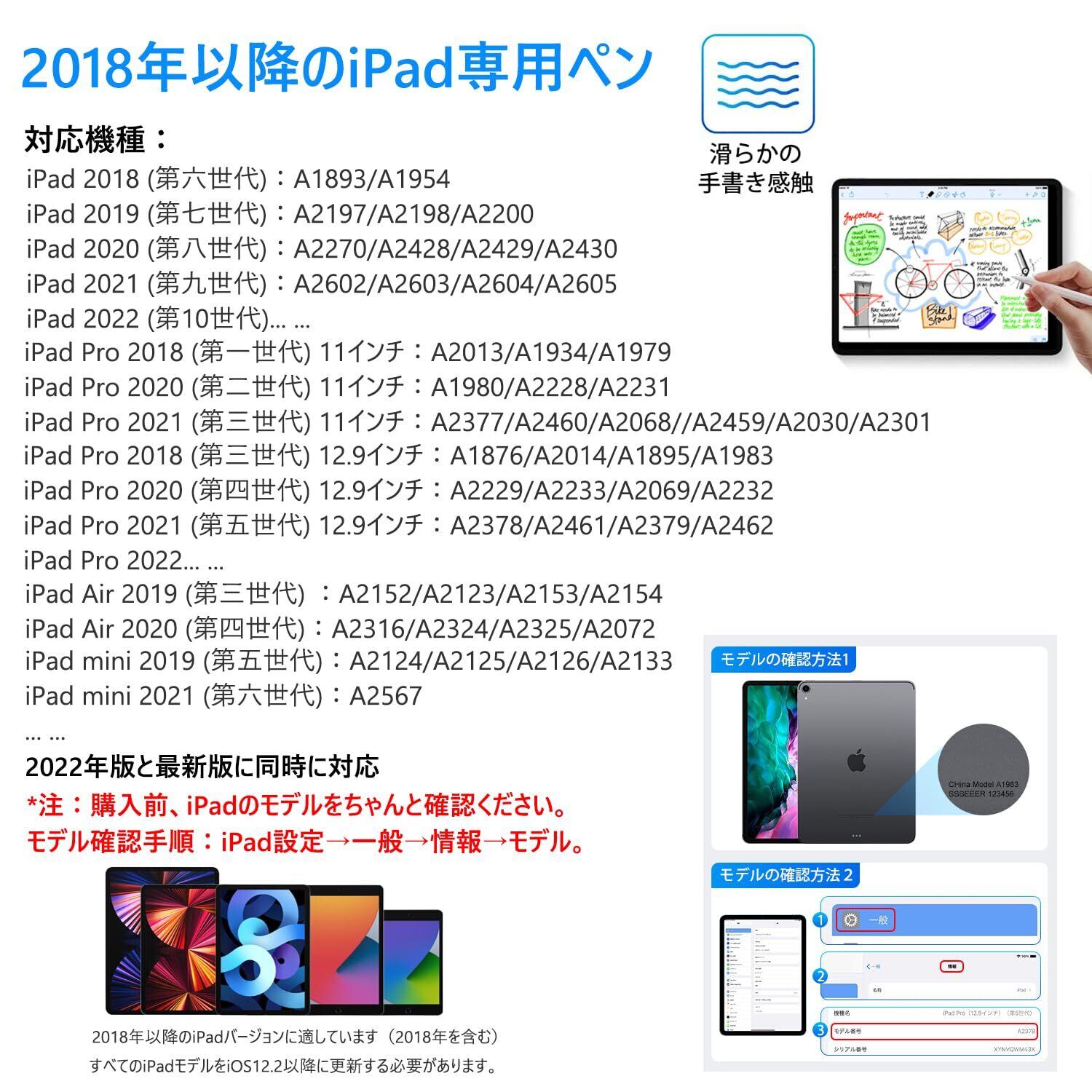 【幅広い互換性、対応機種&iPad専用ペン】2018年以降のiPadバージョンに適しています(2018年を含む):iPad 2018 (第6世代)、iPad 2019 (第7世代)、iPad 2020(第8世代)、iPad 2021(第9世代)、iPad 2022(第10世代)、iPad Pro 2018 (第1世代)11インチ、iPad Pro 2020 (第2世代) 11インチ、iPad Pro 2021 (第3世代) 11インチ、 iPad Pro 2018 (第3世代) 12.9インチ、 iPad Pro 2020 (第4世代) 12.9インチ、iPad Pro 2021 (第5世代) 12.9インチ、iPad Air 2019 (第3世代) 、iPad Air 2020 (第4世代) 、iPad Air 2022 (第5世代) 、iPad mini 2019 (第5世代) 、iPad mini 2021 (第6世代)。同時互換性2021年バージョン、システムのアップグレードはこのペンシルの使用に影響しません。