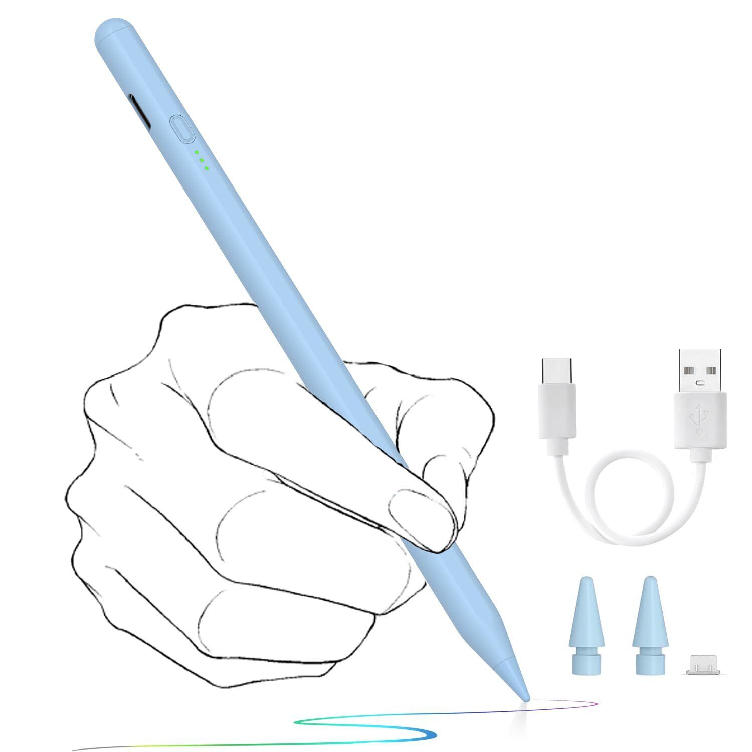 【Bluetoothは必要ありません、操作便利】このipencil面倒な設定とBluetooth接続する必要もなく、タッチペンの頭部のボタンを押すだけ簡単に電源オンすることになります。LEDインジケーターも付いていますので、使用状態がすぐに分かります。使いやすい設計、アルミ合金。(同梱物:iPadタッチペン×1、USB充電ケーブル×1、交換用ペン先×2、Type c充電口防塵ゴム栓×1、取扱説明書×1)。