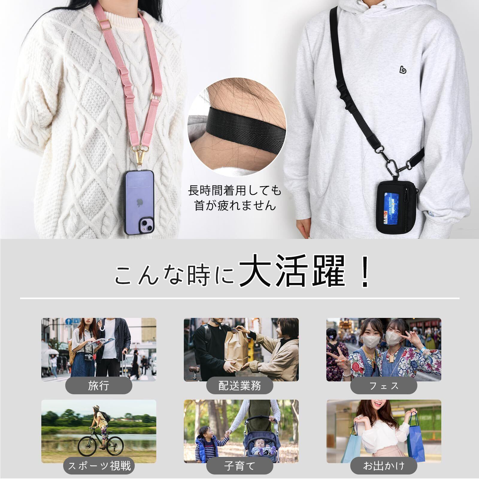 【強化素材】表生地には耐久性と高級感のあるリブ柄のスパンナイロンを使用、身体に触れる面はズレや揺れを軽減する滑り止め素材。携帯ストラップの幅2cm、長時間使用しても不快感がありません。両端のフックは360°回転可能、しますのでストラップ紐が捻じれたり捩れたりしても直ぐに調整して元に戻すことが出来て手間を取りませんので便利です。