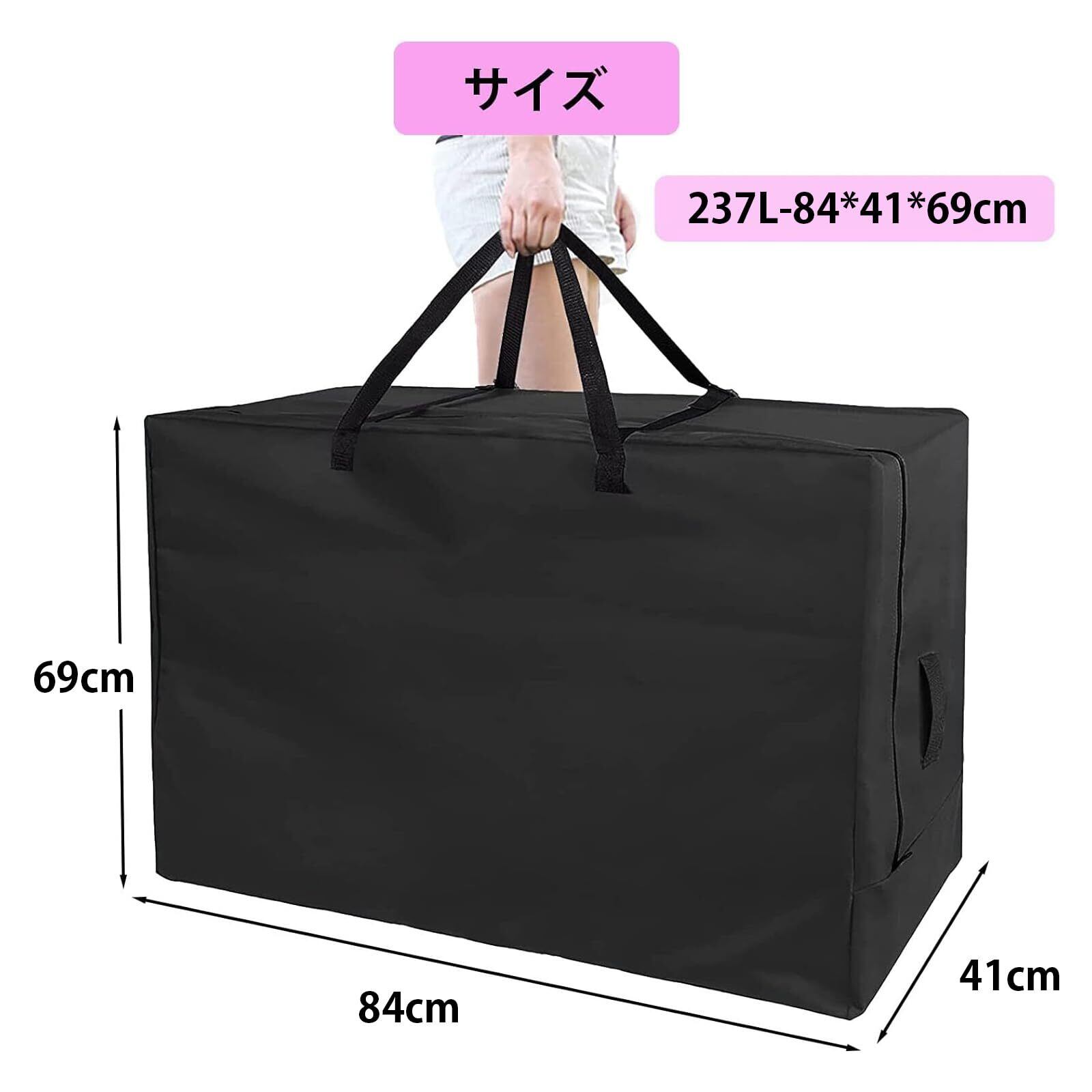 Iptienda ふとん収納袋 大容量 237L 大型収納バック 防水 420D ベットマット収納袋 トートバッグ 羽毛布団収納ケース クリスマスツリー収納バック スポーツバッグ ボストンバッグ 敷布団 衣類収納 -ブラック (237L-84*41*69cm)