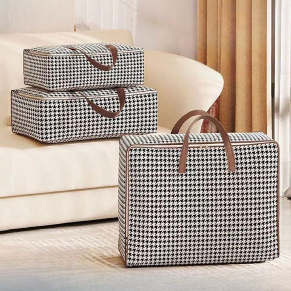 【商品仕様】:品番/QNG3P-92-BK, XLサイズは長さ50 cm 幅25 cm 高さ30 cm、XXLサイズは長さ60cm 幅25cm 高さ40 cm,3XLサイズは長さ70 cm 幅25cm 高さ50 cmです、カラー/BK(千鸟格)、内容/2個、収納目安(1個あたり)/シングルサイズの羽毛布団1枚、材質/ポリエステル
