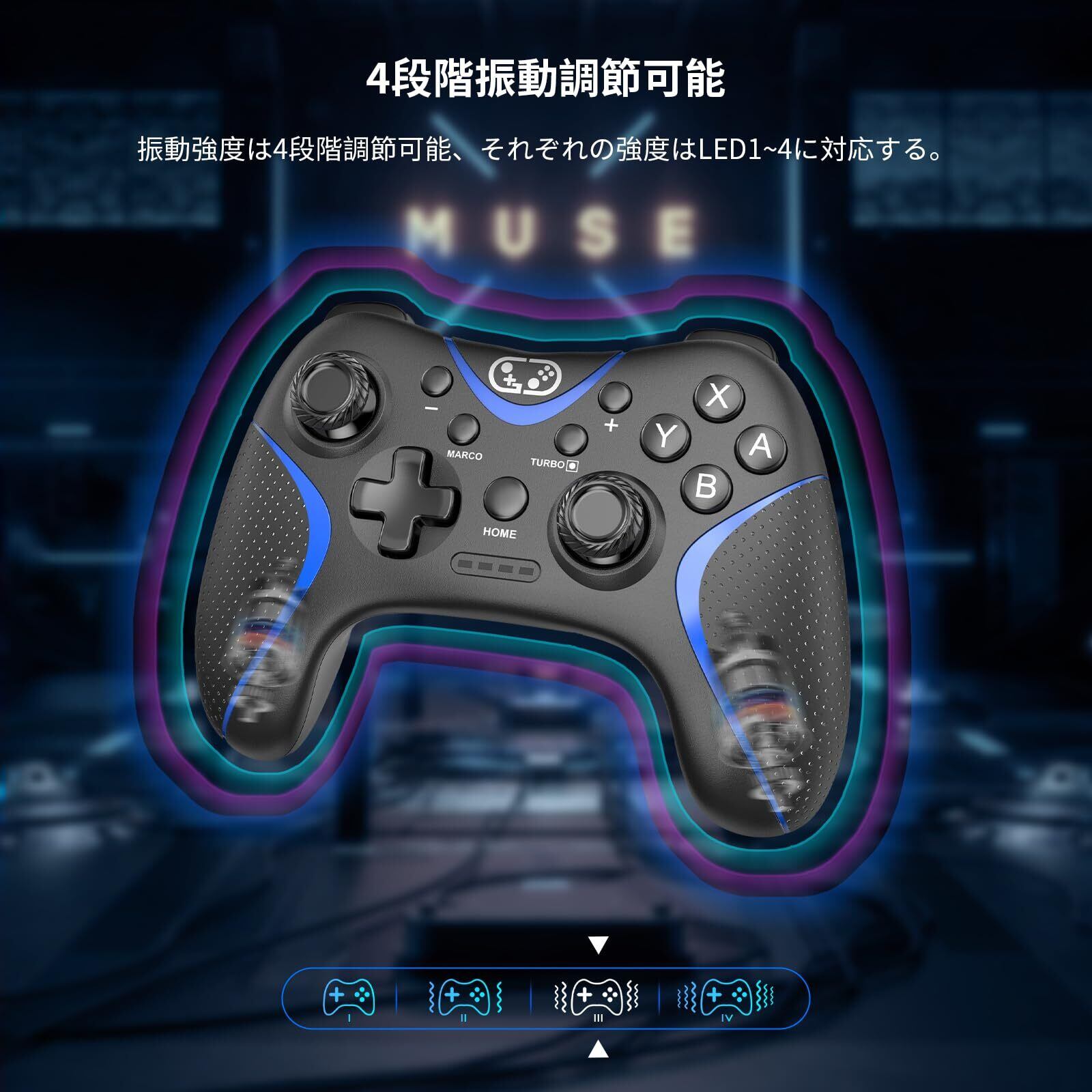 Switch コントローラー 2024アップグレード Sungale スイッチ プロコン 自動連射/連射ホールド 背面ボタン付き マクロ機能 Bluetooth5.0接続 6軸ジャイロセンサー 10時間連続使用 連射コン Switch/PC/iOS13.0+/Android対応 日本語取扱説明書付き (ブラック+ブルー)
