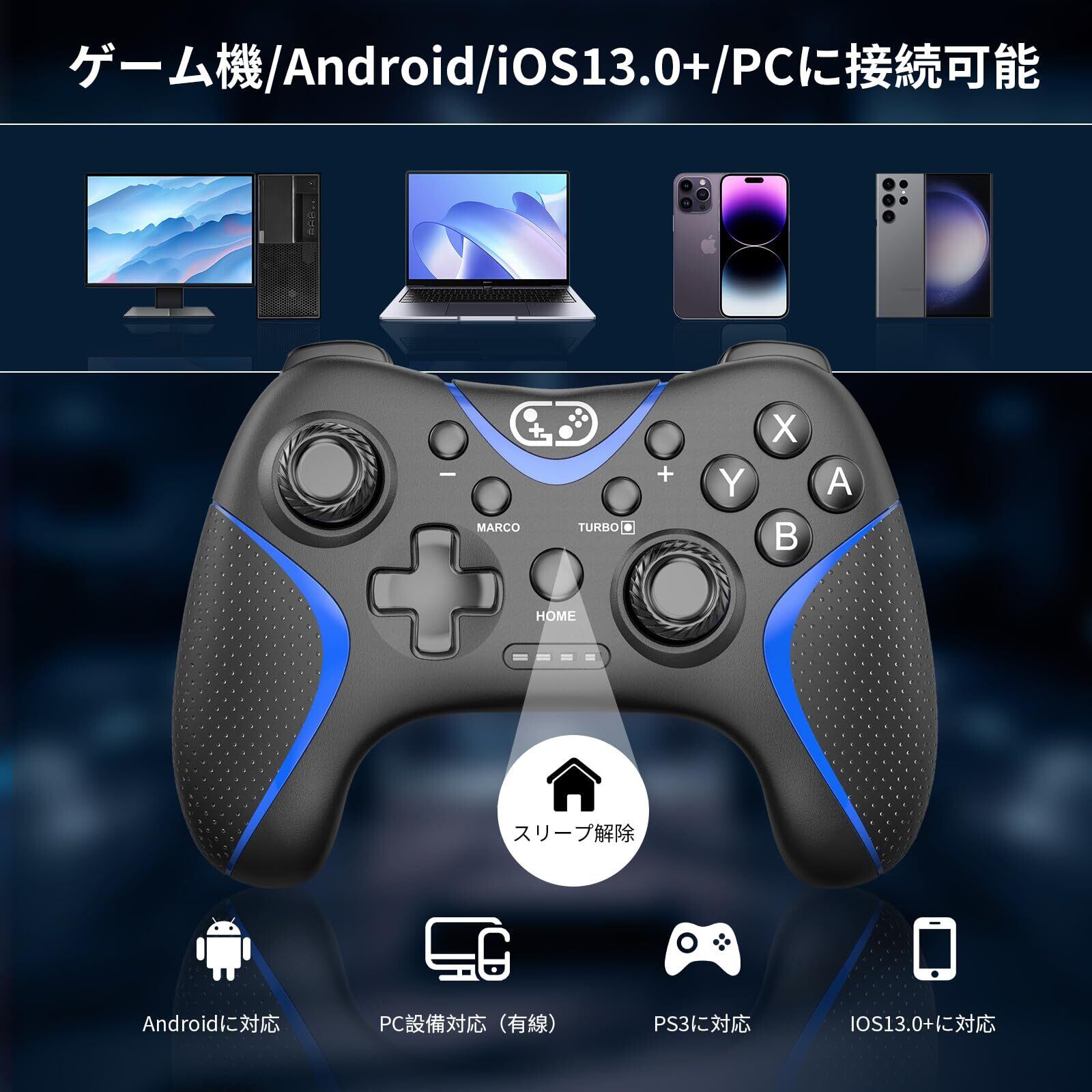 【在庫セール】Switch コントローラー 2024アップグレード Sungale スイッチ プロコン 自動連射/連射ホールド 背面ボタン付き マクロ機能 Bluetooth5.0接続 6軸ジャイロセンサー 10時間連続使用 連射コン Switch/PC/iOS13.0+/Android対応 日本語取扱説明書付き (ブラック+ブルー) | asaRulu0511