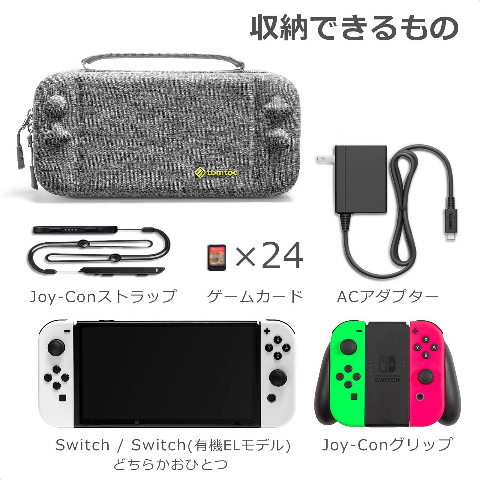 Nintendo Switch 有機ELモデル対応 tomtoc スイッチ 専用ケース プロコン収納 持ち運び キャリングケース ハードポーチ 大容量 プロコントローラー ゲームカード収納 アクセサリーポーチ グレー