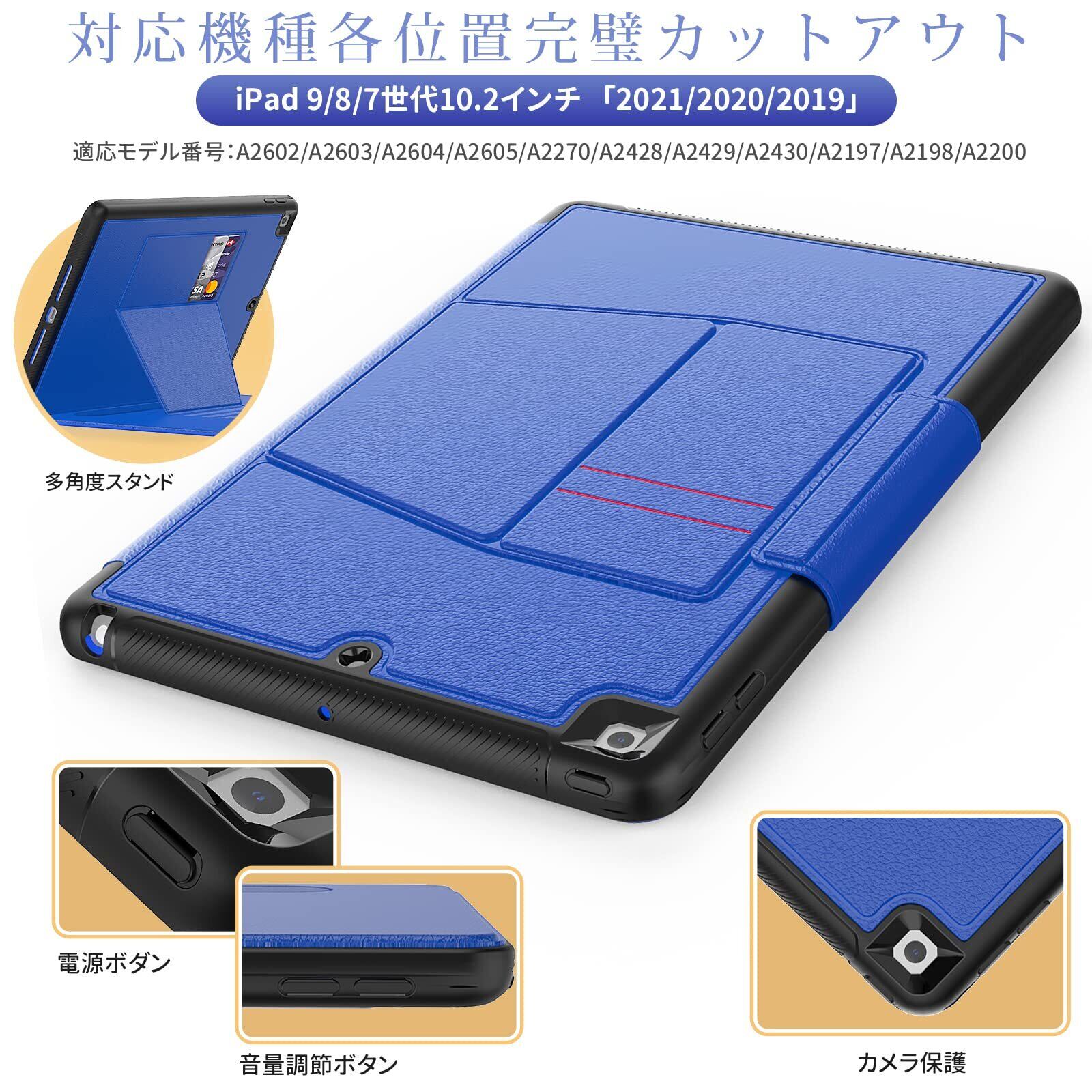 SEYMAC stock ケース iPad 9/8/7世代(2021/2020/2019) 10.2インチ ケース 耐衝撃 多角度横置き調節 オートスリープ ペン収納 カード収納 強磁力全面保護カバー(ブルー)(適格請求書発行事業者)