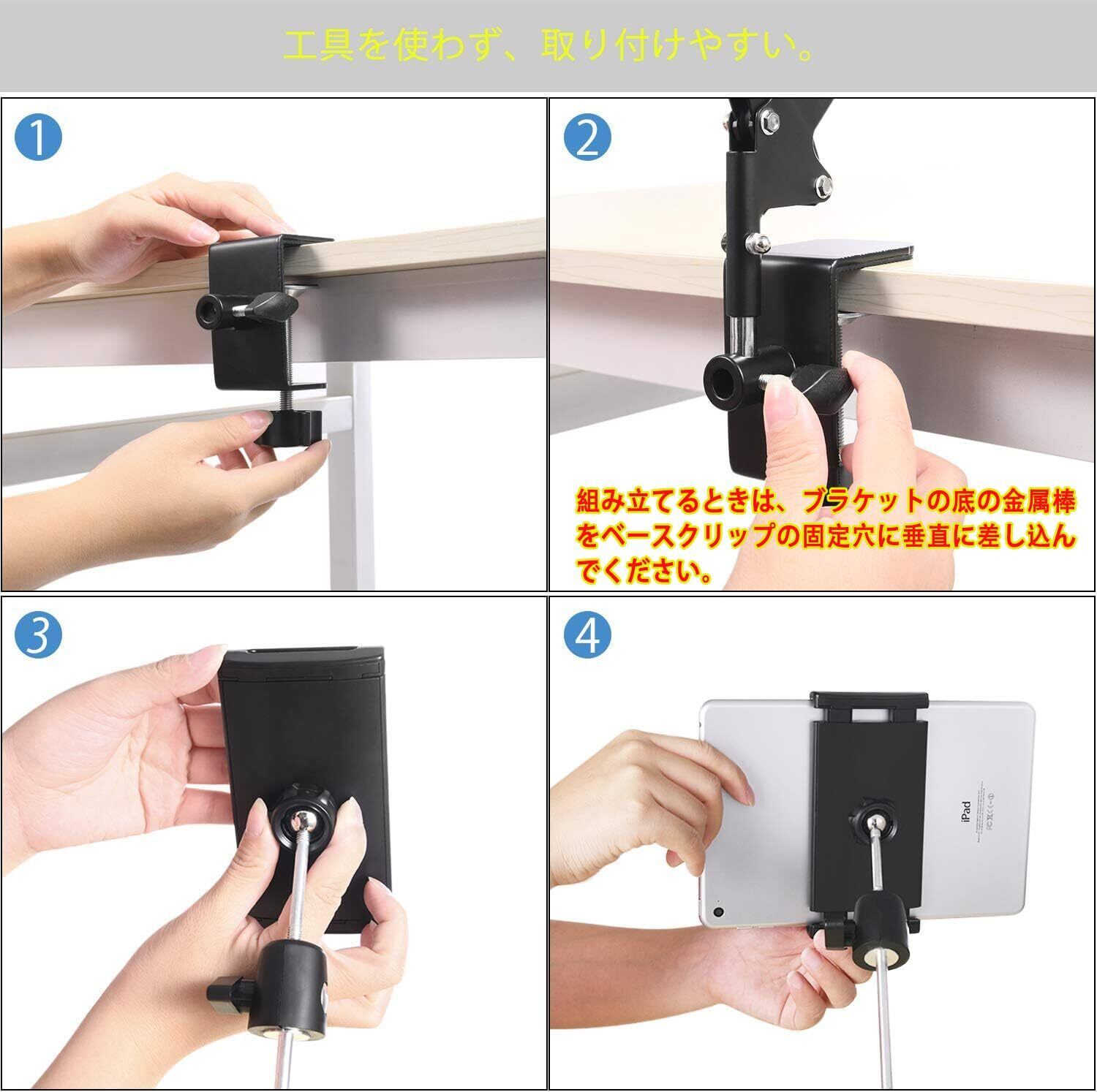 【耐荷重が強い】最大荷重:1800g: 頑丈で完全に調整可能な4段式アルミニウムアームと上質なスプリング付いたタブレットスタンドです。それに、上質なバスマットを備えたレベルアップの台座のため、使用時に安定性が高くて家具を損なわない。