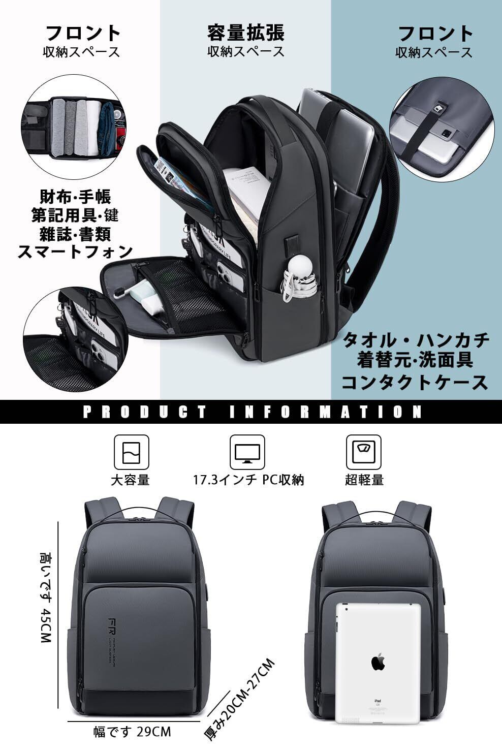 [FENRUIEN] リュック メンズ ビジネスリュック リュックサック 大容量 PCリュック 防水 17インチ ビジネスバッグ マチ拡張 USB充電ポート 黒 型崩れ防止 リュック 通学 通勤 出張