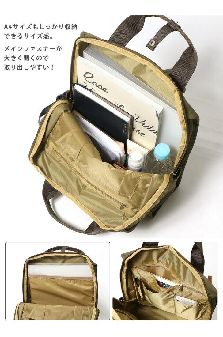 可愛らしいフォルムと優しいカラーで、あらゆるシーンで使えるベーシックなアイテムです。驚くほどの軽さで、強撥水のため雨の日でも安心。ポケット数も豊富なA4サイズ、背面にはセキュリティーポケット付きで安心。リュックのショルダーベルトが垂れない仕様になっているので、トートで持つときにショルダー紐が地面につきません。