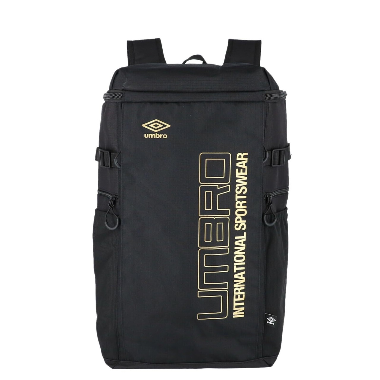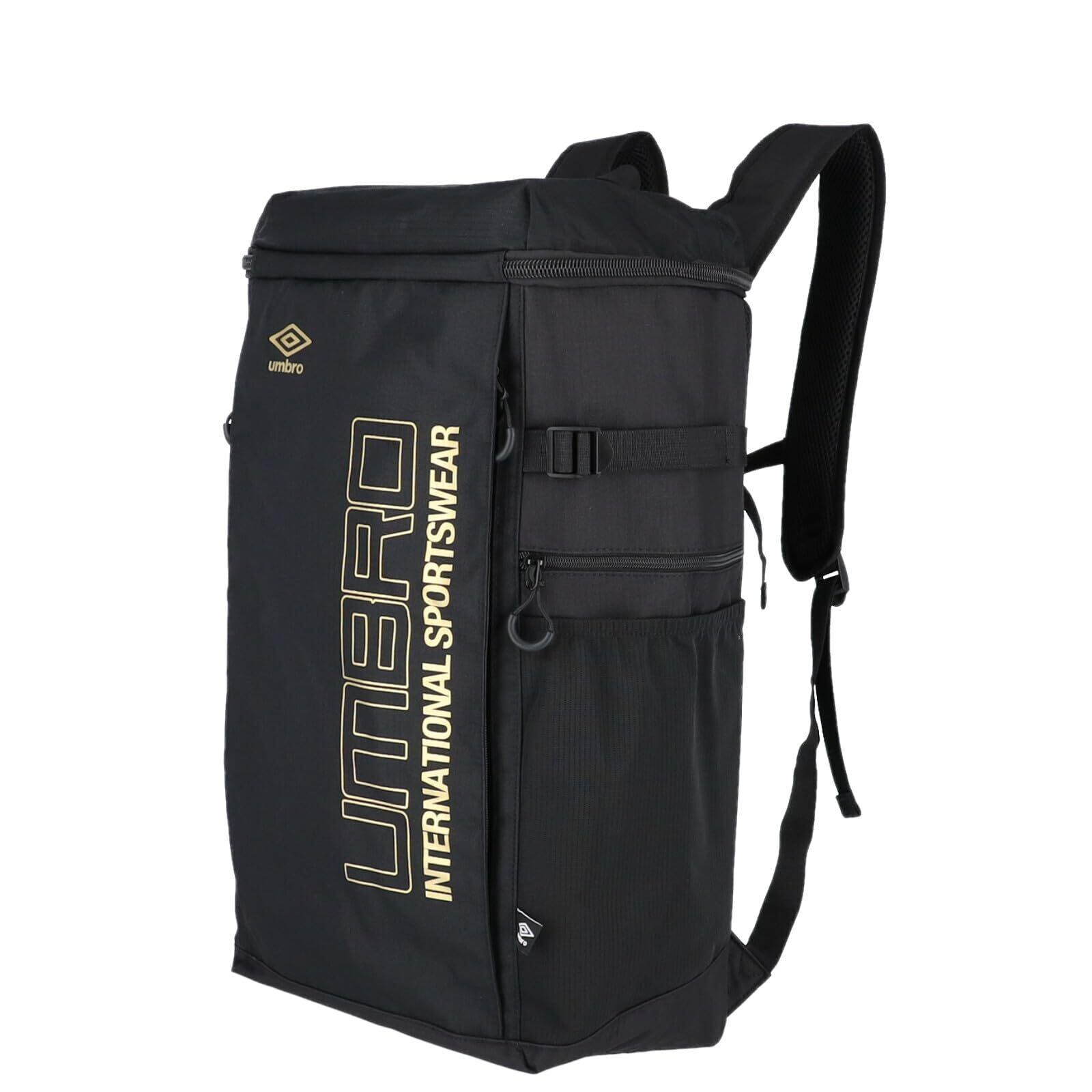 スポーツブランド<アンブロ>のロングボディスクエアリュック。縦57cmのロングボディ、収納量40Lと大容量。1泊程度の旅行ならこのバッグ1つでも十分可能です。内側にはショックを和らげるウレタン入りのポケットを兼ね備えているのでタブレットやワイド型ノートパソコンも収納可能。全部で9つの異なるポケットで仕分けもらくらく。多様に使えるアイテムとなっております。