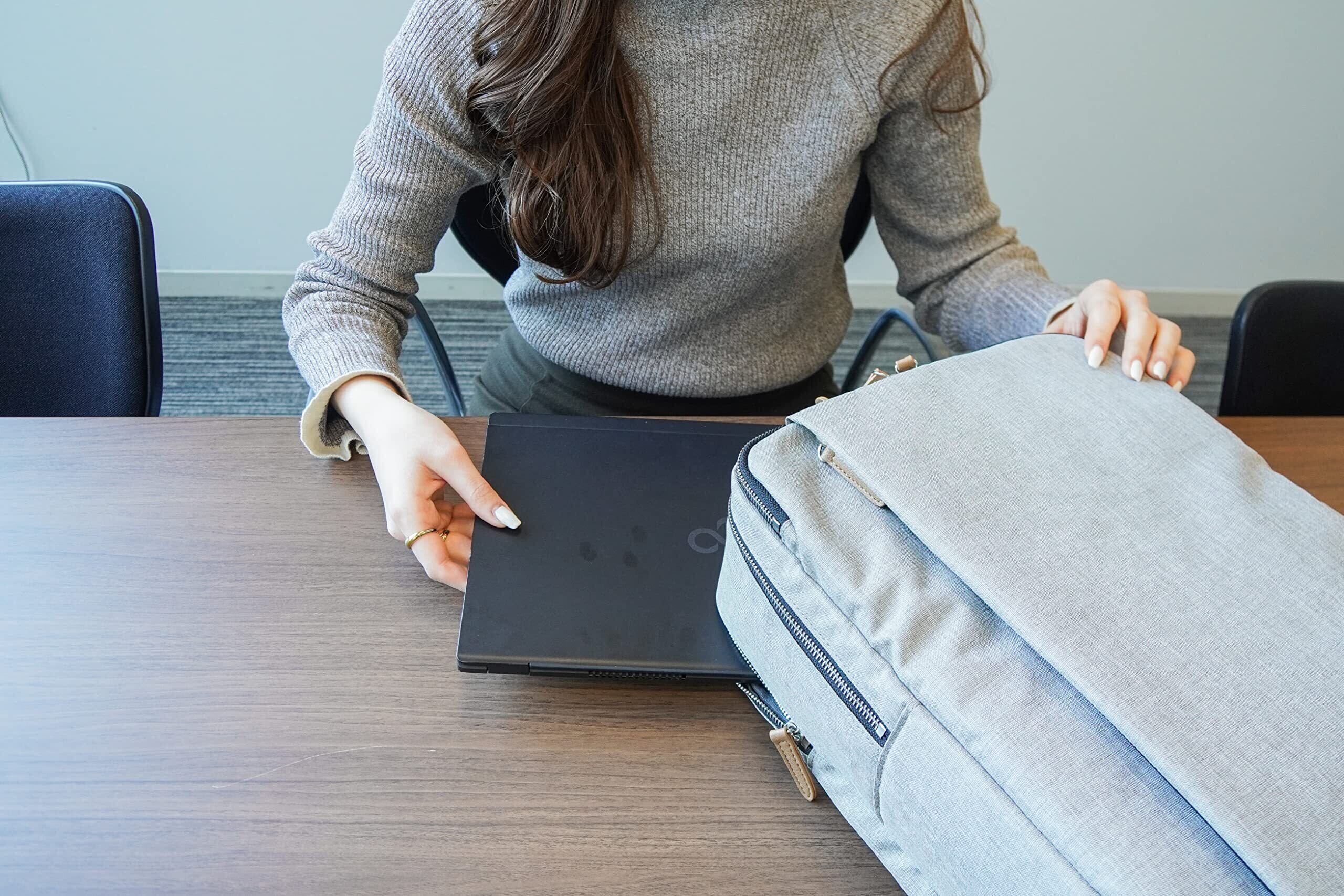 ビジネスシーンに欠かせないPC収納ポケットを搭載し、名刺入れや財布、社員証などのビジネス小物もスッキリ仕分けて収納できるので通勤も出張もこれひとつでOK。
