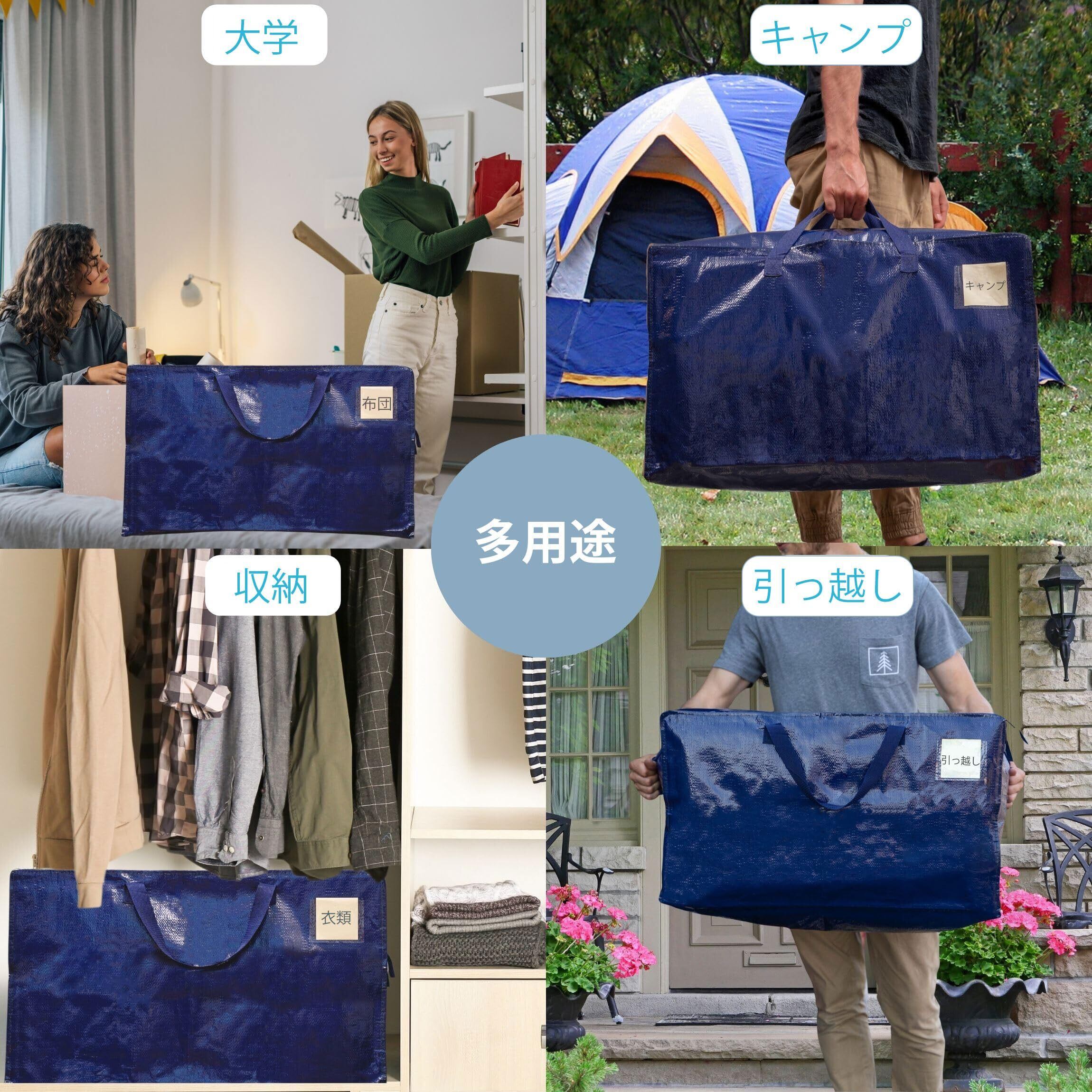 【数量限定】VENO 布団収納袋 103リットル大容量 収納ボックス 引越し用ダンボール 代替品 高耐久 耐水 布団袋 衣類収納 3面ファスナー 大きく開き タグポケット付き 丈夫なハンドル (ブルー 4個セット) | asaRulu0511