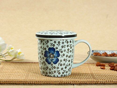 西田(Nishida) 蓋付マグカップ(青い椿)400ml/コップ/カップ/和食器 120022