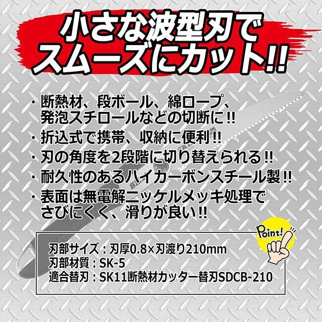 SK11(エスケー11) 断熱材・段ボール・発泡スチロールカッター 折込 210mm ハイカーボンスチール製 SDC-210