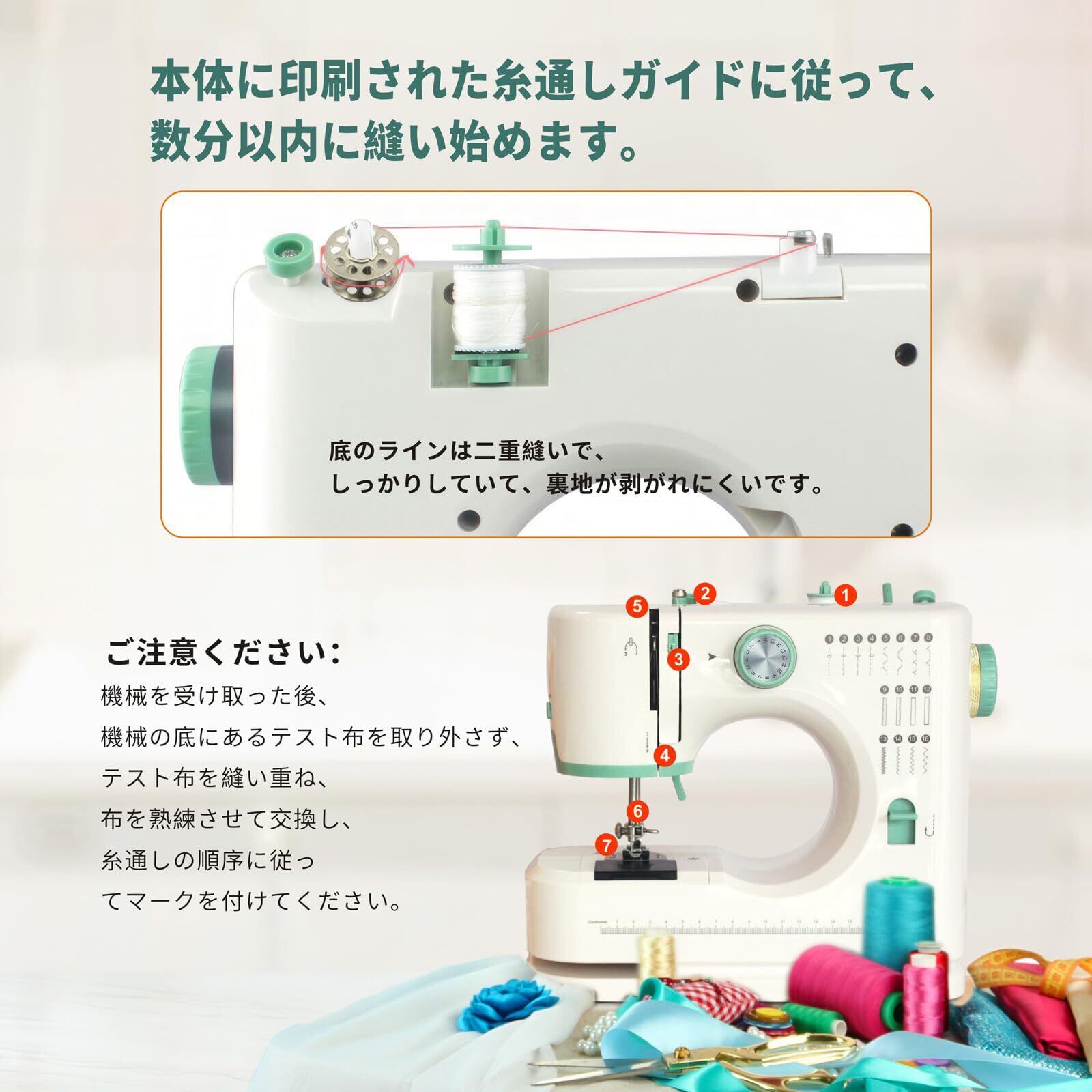 【使いやすく持ち運びに便利】本体に印刷された糸通しガイドに従って、数分以内に縫い始めます。 軽量でコンパクトなデザインにより、このミシンは簡単に保管でき、どこにでも持ち運べます。