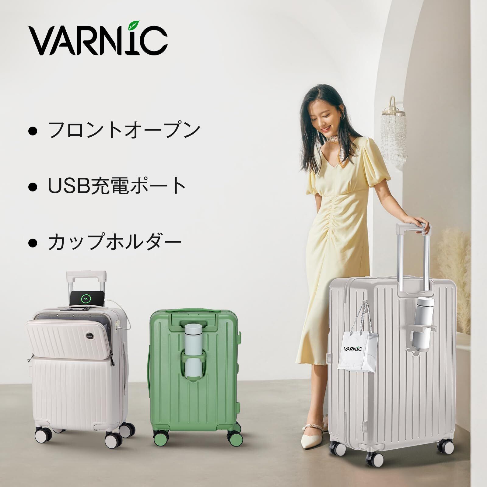 [VARNIC] スーツケース トップオープン式 多機能 キャリーバッグ USBポート付き カップホルダー付き キャリーケース 三段階調節キャリバー ABS+PC 超軽量 耐衝撃 振動軽減 静音 360度回転 ダブルキャスター 物掛けフック式底足 オシャレ 通学 ビジネス 旅行 出張 (ホワイト, Mサイズ (4~7泊))