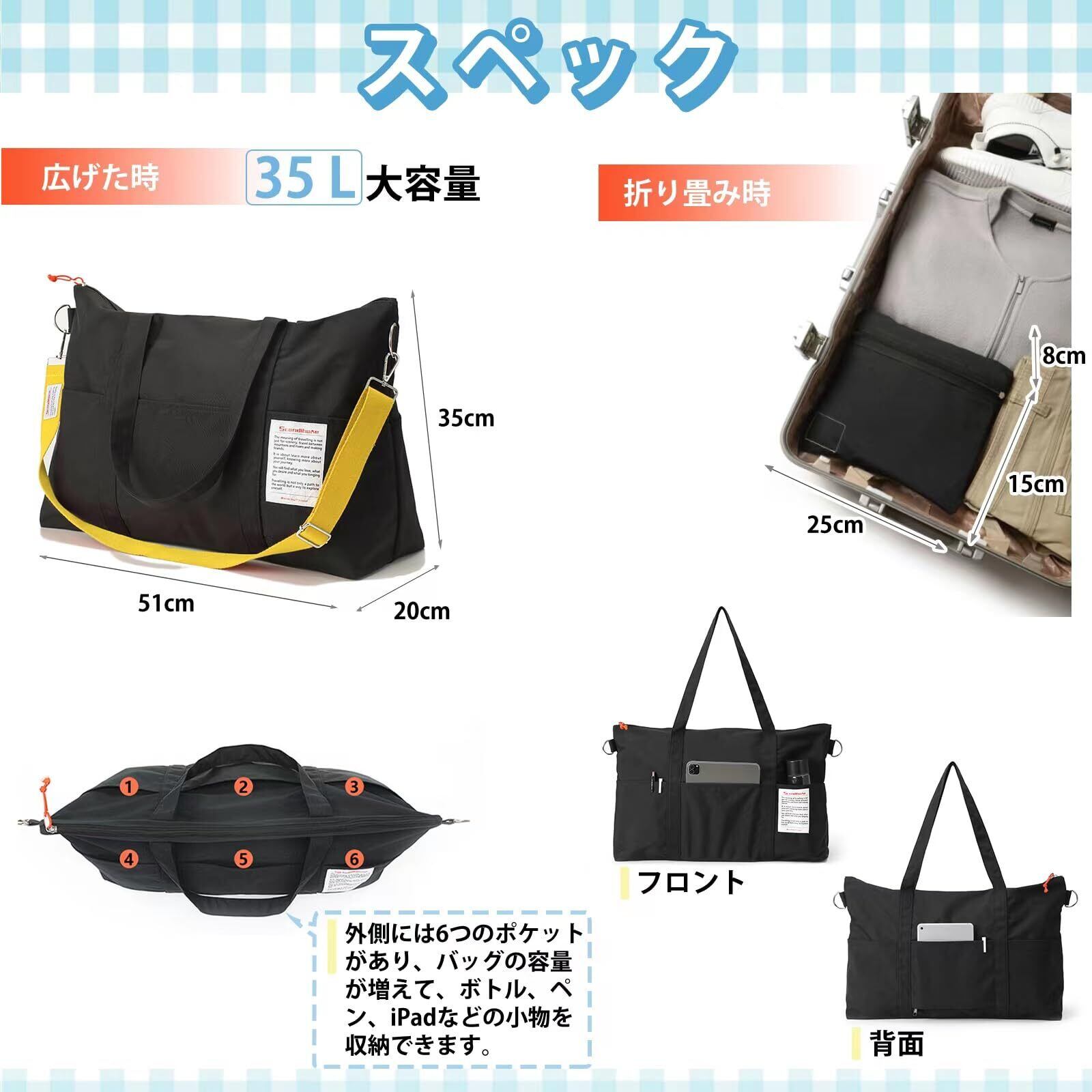 【大容量安心】35Lの大容量海外旅行のサブバッグ、1泊の温泉旅行のメインバッグにも。 回程の特産も豊かに。
