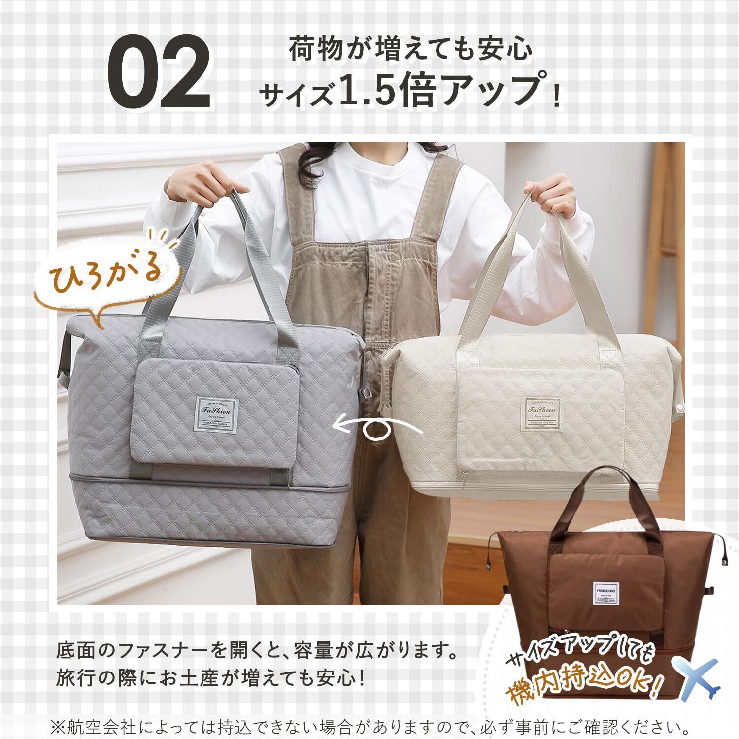 [MRG] ボストンバッグ キルティング 旅行バッグ 大容量 キャリーオンバッグ 折り畳み トラベルバッグ トートバッグ 2WAY 軽量 コンパクト 防水 カバン バッグ サイズ調整可能 韓国風 (グレー)
