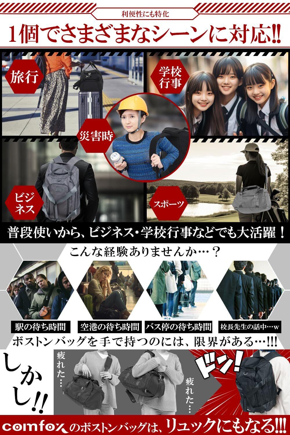comfox (コムフォックス) ボストンバッグ 【リュックにもできる5WAY】(防水ポケット大き目/30Lでも大容量/軽量) 旅行バッグ 防災バッグ キャリーオンバッグ スポーツバッグ メンズ レディース 機内持ち込み 1泊 2泊 3泊