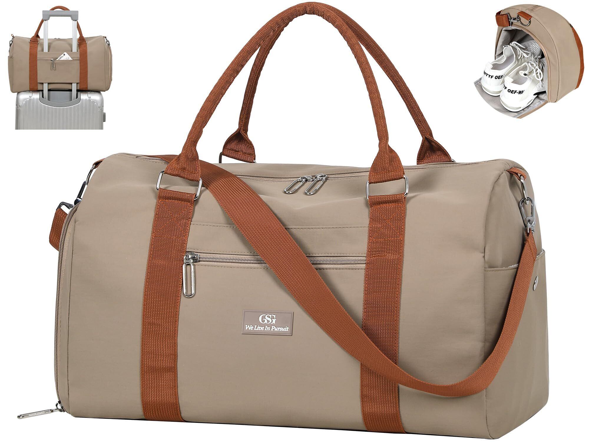 【GSG】ボストンバッグ 修学旅行 旅行バッグ キャリーオンバッグ 軽量 小さめ (シューズ収納付き/乾湿分離ポケット付き)大容量 4WAY 防水 コンパクト 多機能 ジムバッグ スポーツバッグ 1泊 2泊 (カーキー)23014