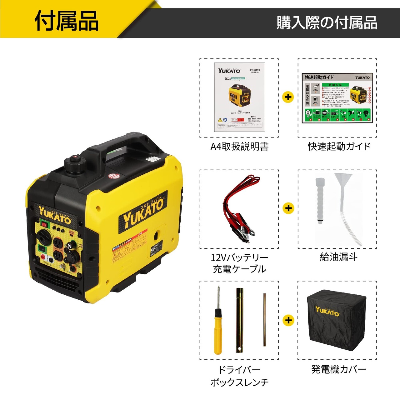 【在庫セール】YUKATO インバーター発電機 定格出力1.6kVA 小型発電機 家庭用 50Hz/60Hz切替 約15kg 防音型 高出力正弦波インバーター搭載 過負荷保護 ガソリン発電機 PSE認証 ポータブル発電機 軽量 アウトドア レジャー 防災 備蓄 災蓄 非常用