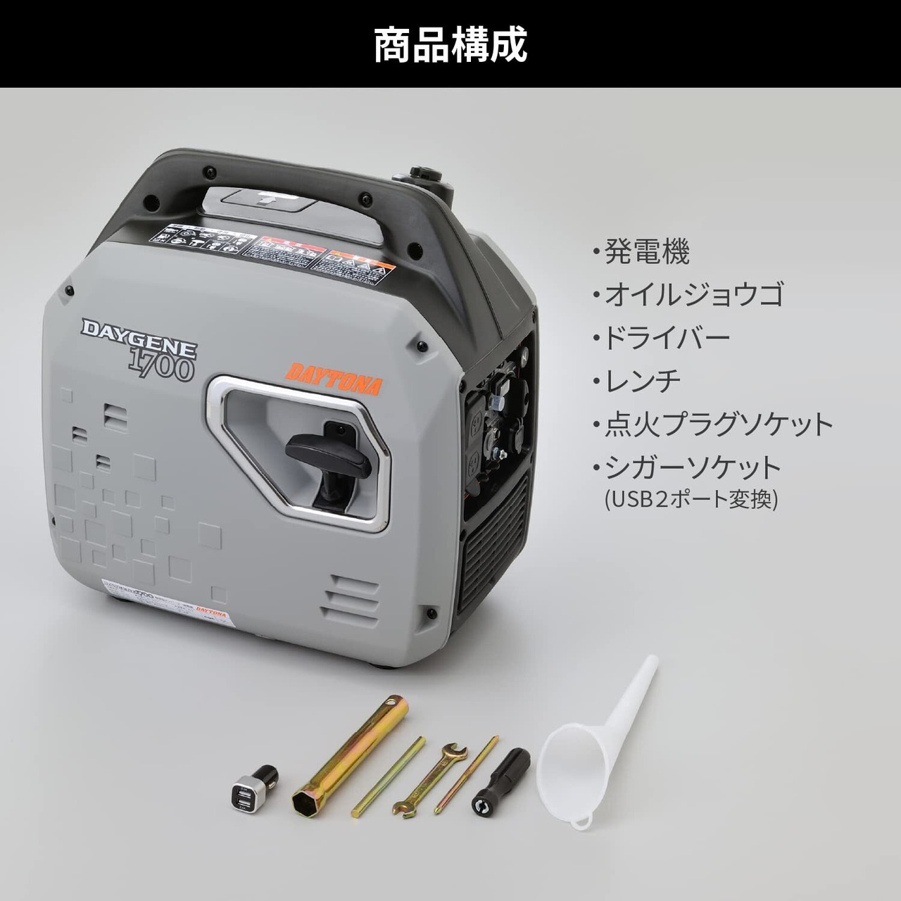 【人気商品】デイトナ(Daytona) ガソリン発電機 家庭用 軽量 静⾳ インバーター発電機 デイジェネ1700 26219
