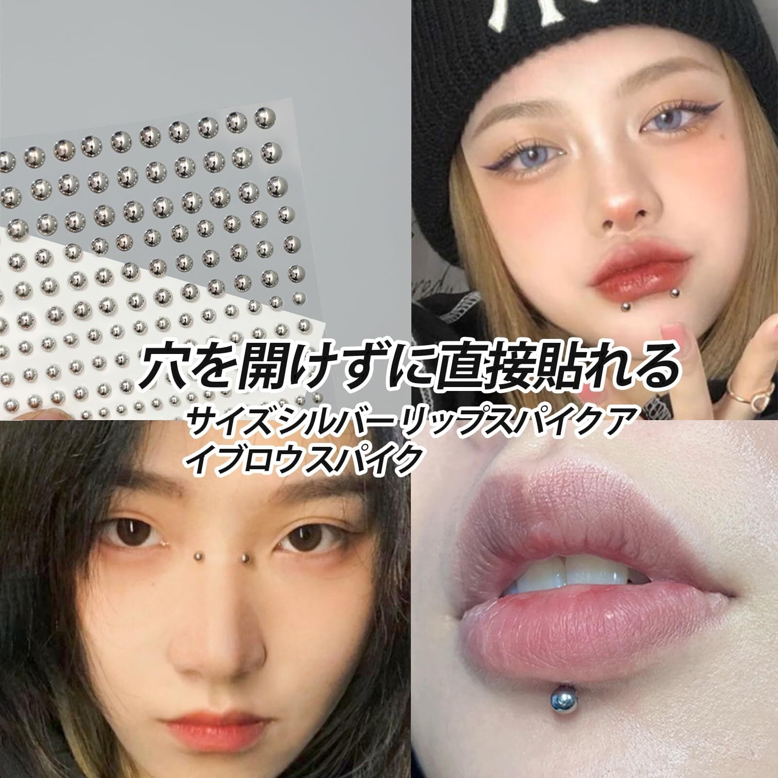 [AUTAKI] ピアス シール 穴いらず ノンホールピアス 貼るピアス 貼るボディピアス 唇釘 眉釘 顔面デコ用 口ピ フェイク フェイクピアス ラウンド 装着簡単 長持ち 地雷系 おしゃれ 人気 男女兼用 ゴシック ハロウィーンデコレーション