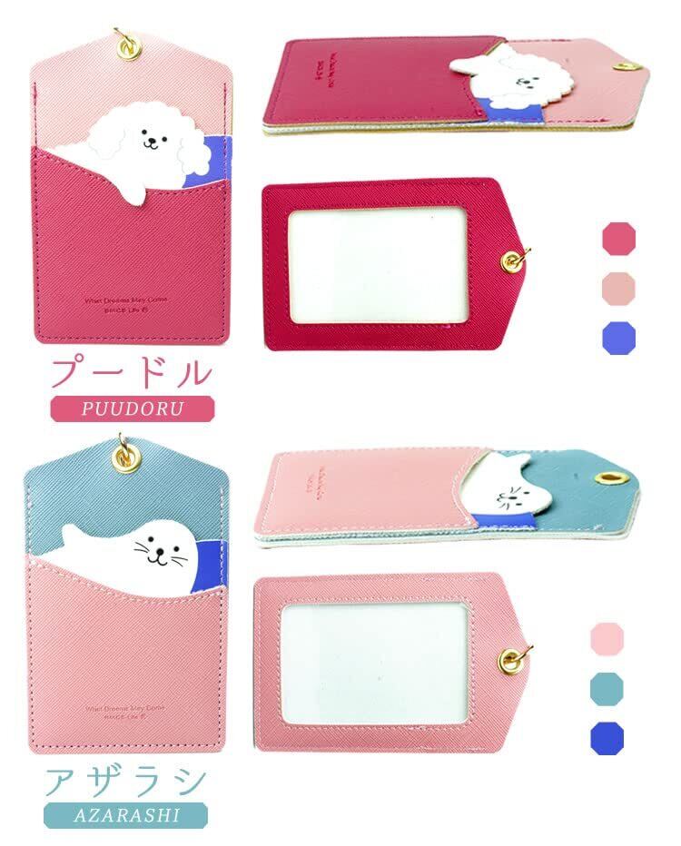 prendre パスケース 動物 トリコロール しろくま ネコ あざらし プードル 犬 イルカ 猫 白熊 かわいい 通学 通勤 入学祝い プレゼント ギフト アニマル クリア窓 リング付属 (プードル) PR-PASSCASE04-PU